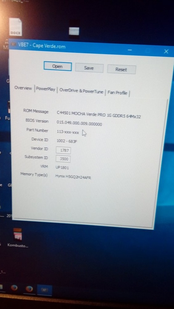 Всем привет. Есть карта ATI Radeon R7 350 2 ГБ 128Bit GDDR5. Заказывал на Али. Имеются все основания утверждать, что это 7750 с модифицированным биосом. Из-за того, что прошит объем памяти в 2 гига, а по факту имеем 1 - большинство ресурсоемких игр просто виснет или выбрасывает на рабочий стол. Попытки поставить альтернативный биос от схожих карт ни к чему не привели. Винда либо виснет в момент загрузки, либо выдает, что устройство работает с ошибкой. Есть похожие темы один в один как у меня, только проблема с картами NVIDIA - проблема решилась тем, что был модифицирован родной биос и указан правильный объем памяти. Может кто подсказать как и мне провернуть такой трюк со своей картой? Прога VBE7 этот вопрос не решает... или я просто не знаю как правильно это сделать... Прикрепил скрин GPU-Z (на родном биосе) + тот же родной биос, открытый через VBE7. Какая-то нестыковка... Помогите. Спасибо.