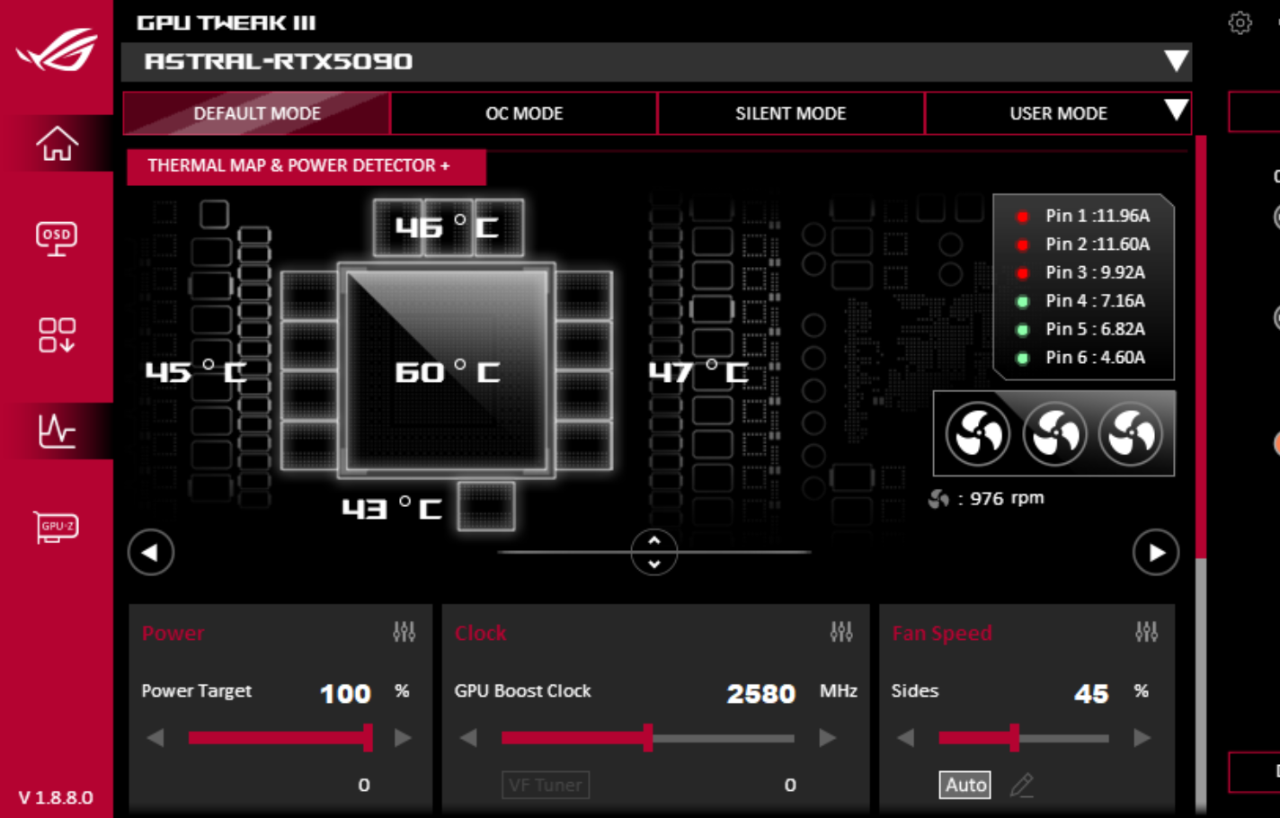 Кстати, там же в теме человек разместил скриншот ПО GPU Tweak III от ASUS для карты Astral. Как раз той фишки (не нашёл её названия), которая мониторит показания кабеля питания и предупреждает о превышениях. Комментарий владельца: Let's see how'll my cable from Aura deal. Thor will come on tuesday, and I'm on ATX 3.0 Aura with really bad connector, after visual inspection.