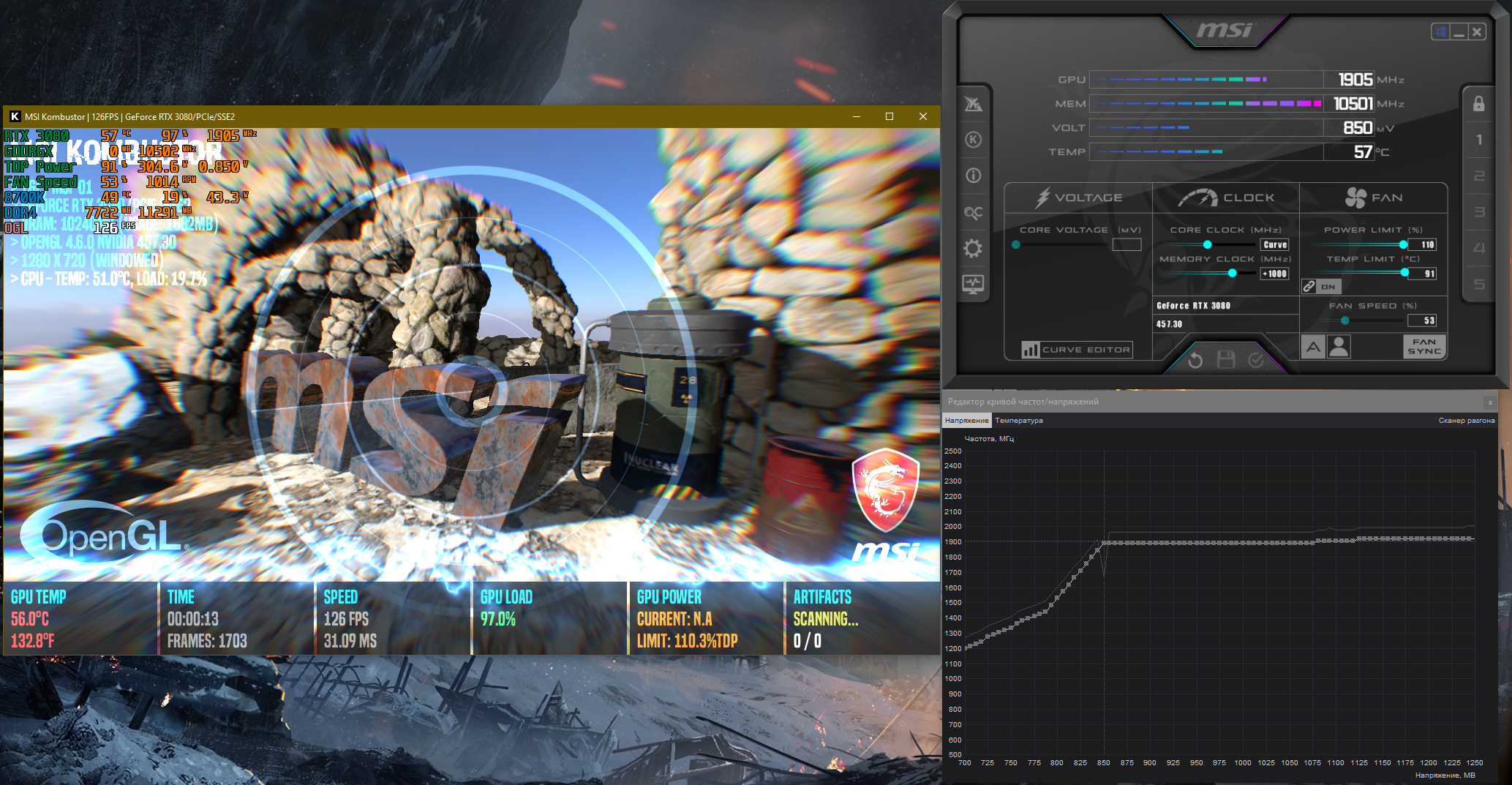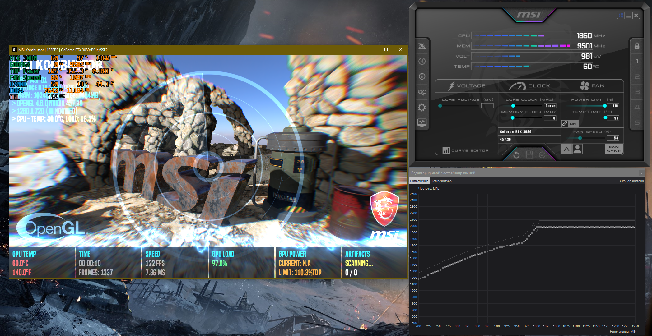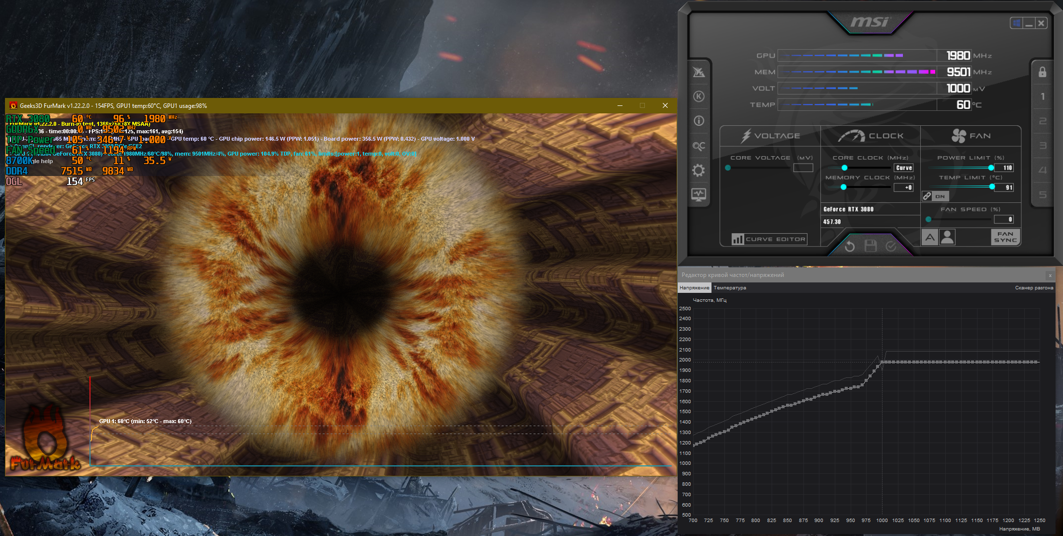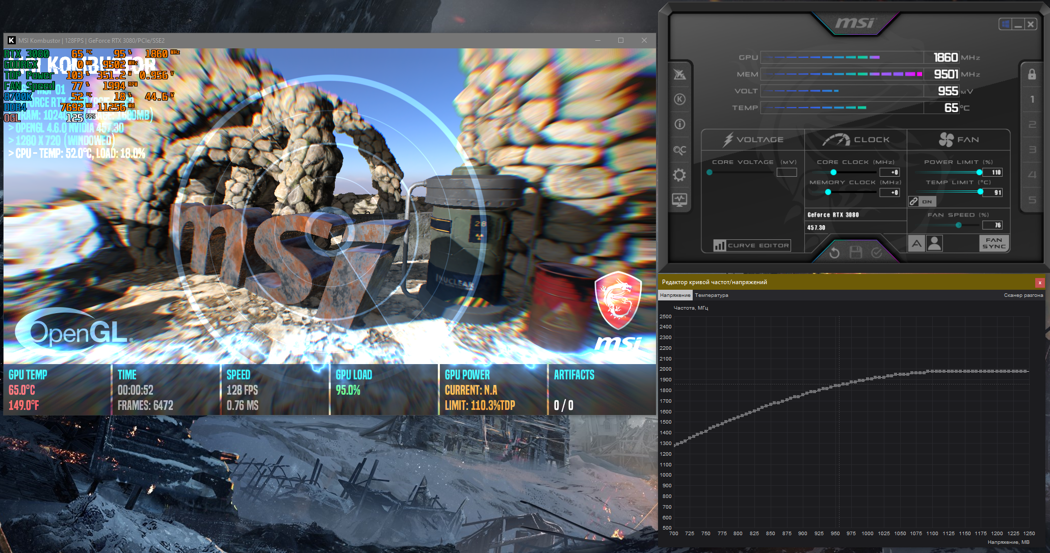 Всем доброго времени суток. Приобрел недавно rtx 3080 asus tuf oc. И возникли у меня с ней непонятки при настройке curve, да и впринципе при автоматическом бусте частот. На автомате вот такая картина в Kombustor (сразу скажу что в играх и 3dmark картина в целом совпрадает):