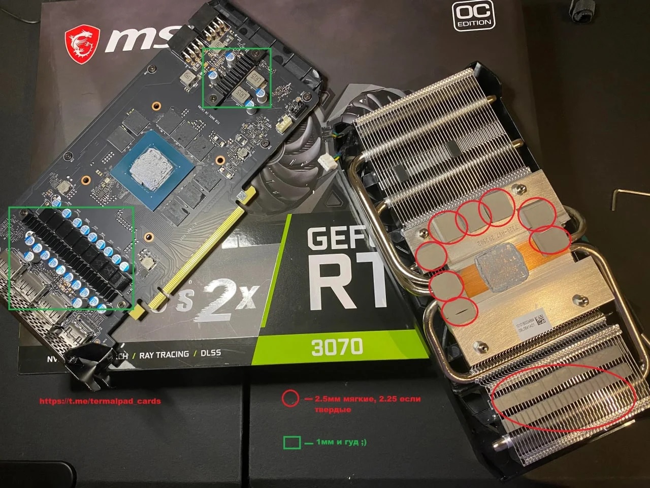 В общем, все у меня получилось, огромное спасибо всем за информацию. Остался вопрос по даунвольтингу, я так понимаю курву снижают для того, чтобы не в играх не подскакивала частота? Сделал без нее, только вспомнил, но недолго переделать. И еще один, о целесообразности установки медной плиты, по результатам даунвольтинга я получил: в 4к 60fps - 70г - GPU, 90 - HS, 60 - mem; в 2к 60fps - 60г - GPU, 80 - HS, 60 - mem. Как итог пластина толщиной 1.6 хорошо отводит тепло с памяти, но либо она не позволяет полностью прижаться к ГП(вроде на 0,1 мм ниже разницы в высоте ГП и памяти), либо отвод тепла от памяти дополнительно нагружает систему охлаждения и как результат повышение температуры в целом. Что думаете?