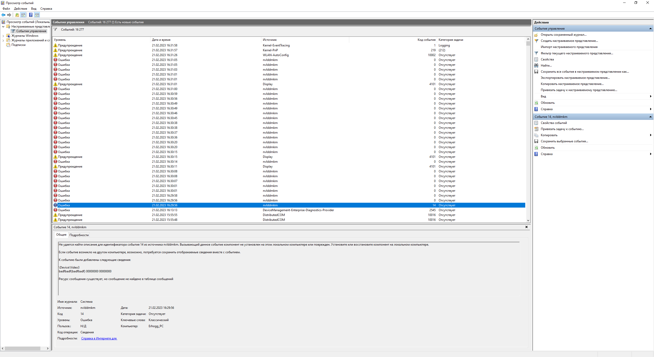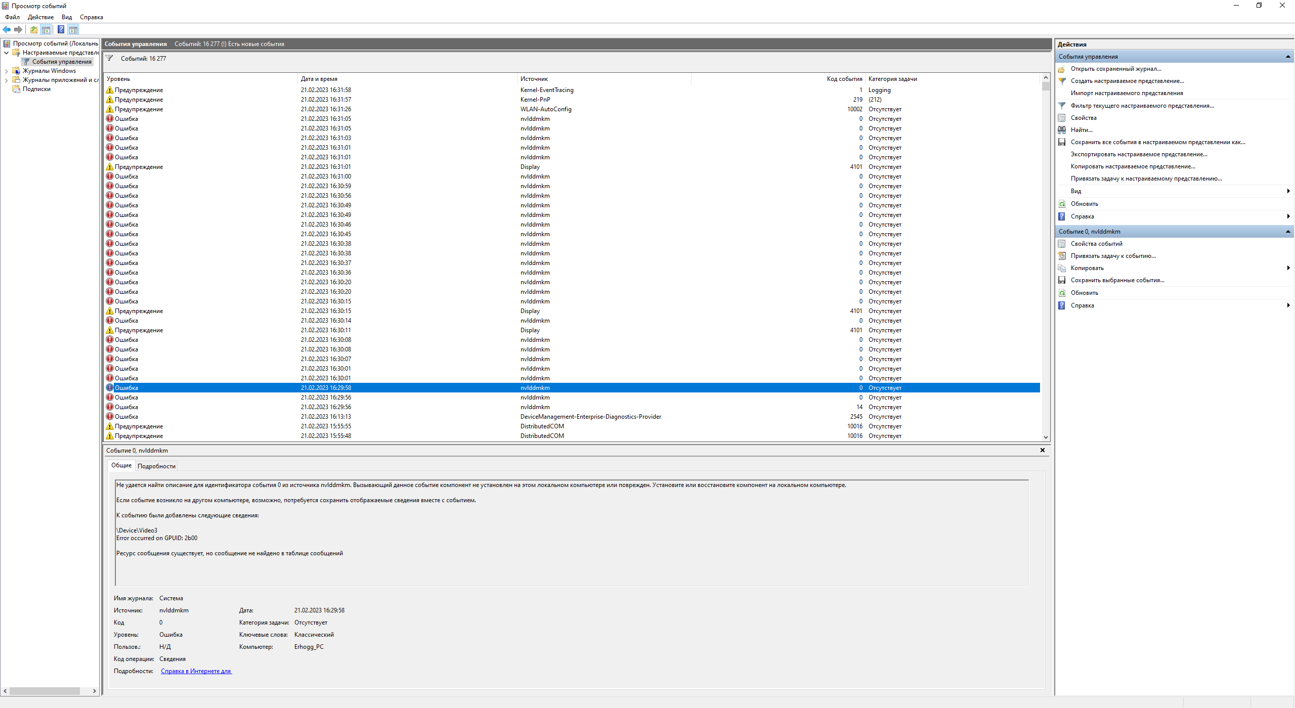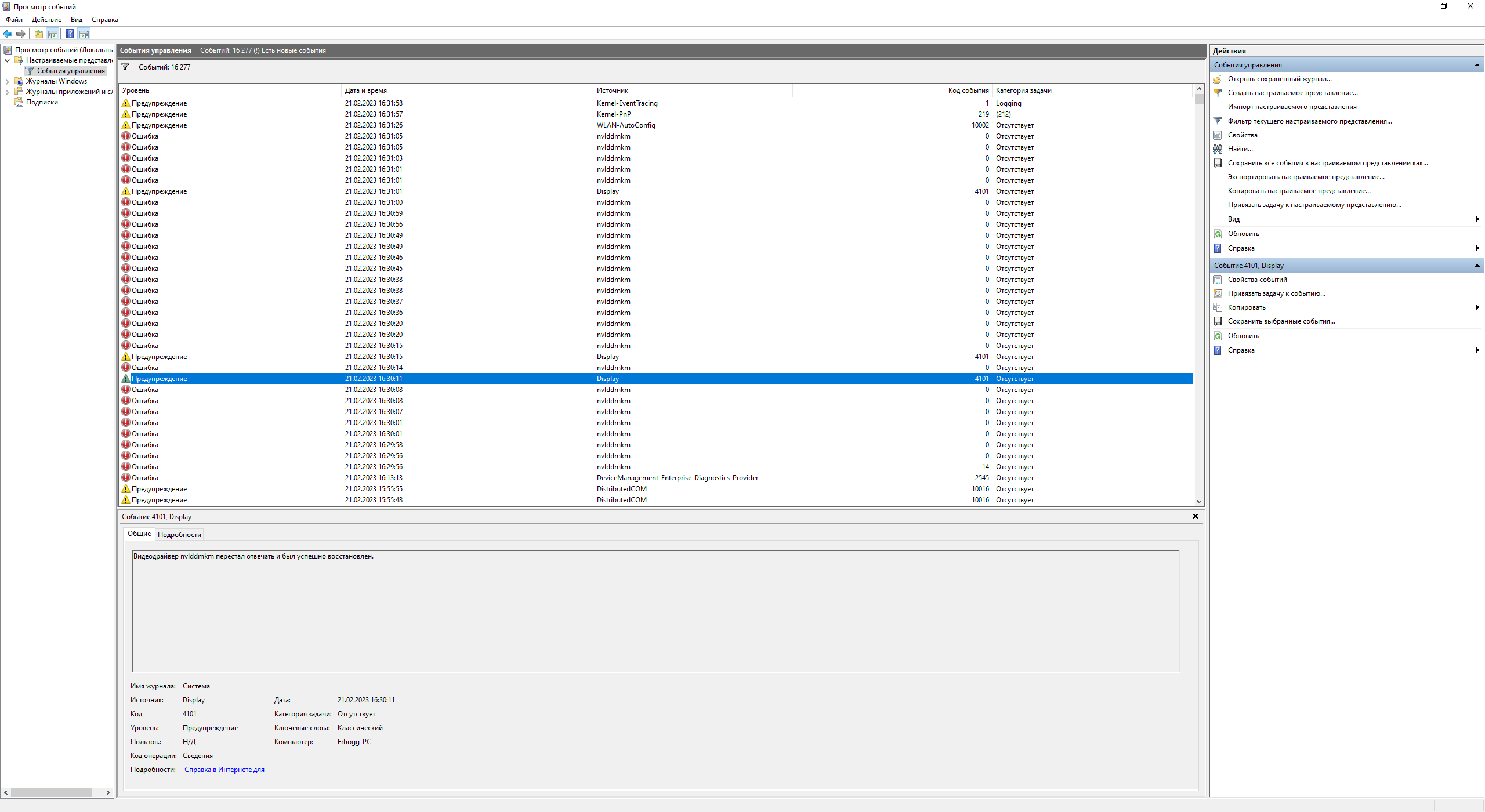Сегодня словил пресловутый "черный экран". При открытии Afterburner ДО применения профиля. Сначала завис курсор, потом черный экран кулеры видюхи на максимум, дальше перезагрузил компьютер. В логах множественные вылеты видеодрайвера. Скрины прикладываю. Что это может быть? Карте конец?