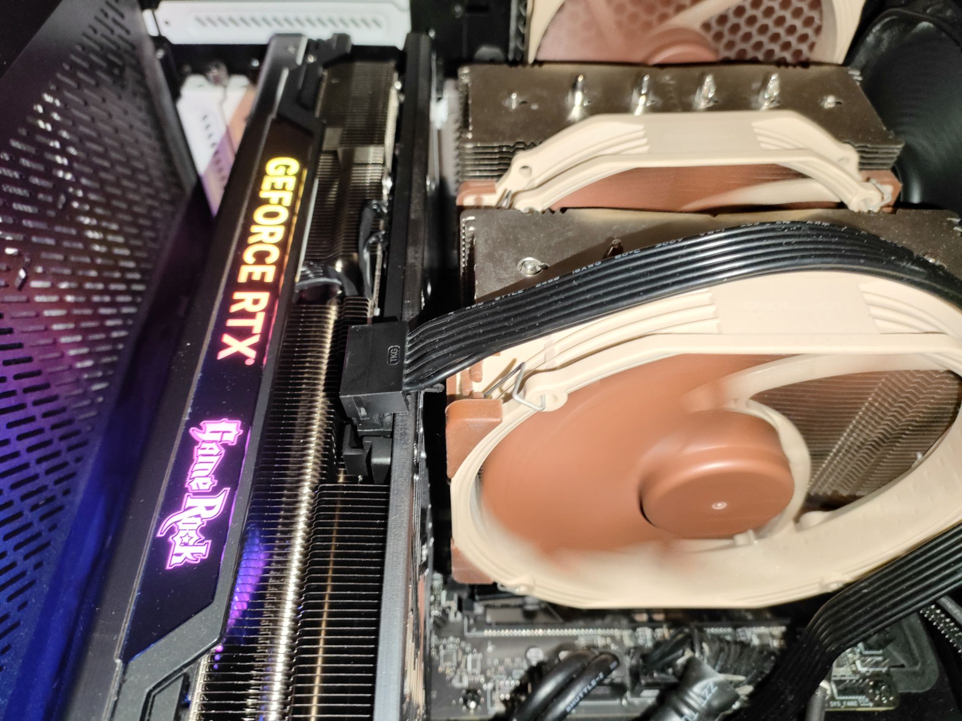 Брал у него, но немного другой, там мои фото есть https://aliexpress.ru/item/100500512101 ... 1740628266 (сейчас именно на этот что-то цену загнул) под seasonic c 4-ю концами, 16 awg, но по факту там только по 4 штекера задействовано в каждом отводе и поэтому, думаю, что с двумя косами тоже самое, если все пины задействованы. С виду сделан качественно. Сравнивал с родным переходником, металлические контакты не хуже. Разъём качественный, но за счет перегиба шлейфа его немного выгибает так, что он больше 90° Сейчас воткнут в 4080. С Noctua D15 другой колхоз получается