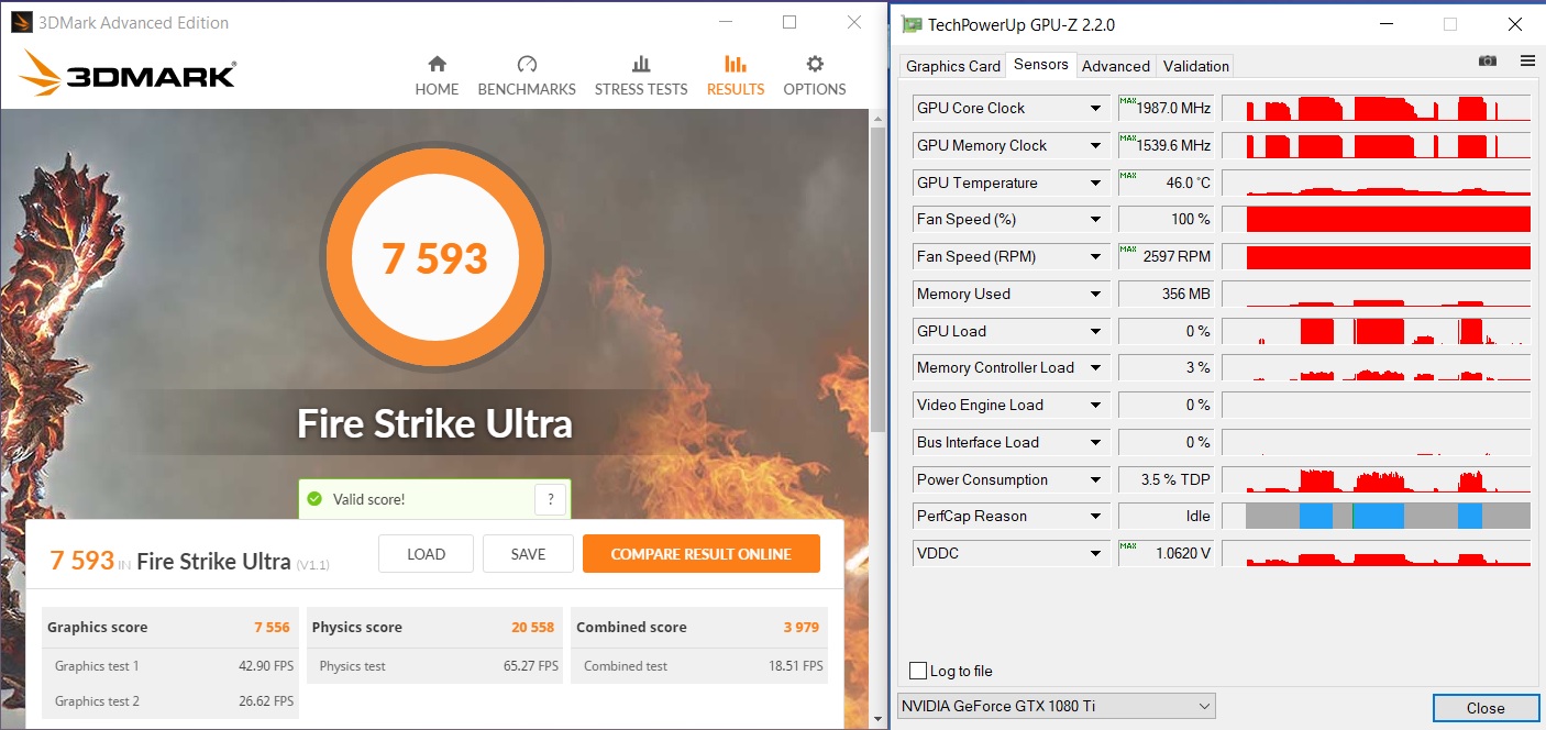 Я же выше скрин приложил, где на 1800х и 1070 результат рознился с 7700к с 2 отрубленными ядрами. Всё дело в оптимизации. В данном случае всё проще-на ln2 биосе агрессивно заниженная кривая, специально идет для экстремальных разгонов, так как при активации высокого напряжения оно лочится в простое на максимум, кривая не работает, игнорируется. Особенности bios. На стоковых оборотах и заводской частоте (1987мгц) карта на <1300об до 65℃ прогрелась, врм-до 75. Это в стресстесте time spy. Пока что это победитель среди всех карт, что я юзал