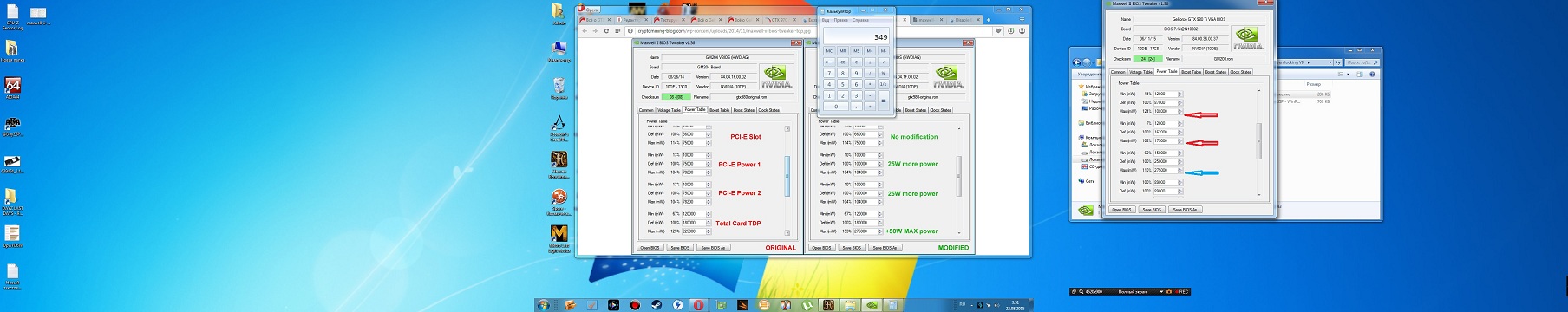 Вариант с редактирование таблицы частот с помощью НЕХ-редактора: Выставляем нужное нам напряжение буста во 2 и третьей строчке таким образом(моё напряжение для буста - 1.175в) Во второй строчке к правому значению прибавляем один шаг, в третьей ставим максимальное значение, до которого через АВ можно будет поднять. #77 Запоминаем, на какой ячейке расположена частота 3d base clock: #77 На позицию буста(у меня при 1.174в это 59 ячейка) ставим частоту, которая при этом напряжении стабильна(я ставлю на 20-30 мгц ниже, остальное добавляю в АВ) #77 Далее открываем биос в НЕХ редакторе и ищем ячейку буста: к номеру ячейки прибавляем 12 (в моём случае 59+12=71) и переводим в hex (71d = 47h). Далее берем частоту на этой ячейке(1455.5 у меня), умножаем на 2(2911) и переводим так же в НЕХ(2911d = 0B5Fh). Ноль не теряем. Далее ищем в НЕХ коде биоса следующую шестнадцетиричную последовательность: 47 5F 0B 00 01 #77 Где 47 - НЕХкод ячейки биоса, 5F 0B - удвоенная частота младшими разрядами вперед(0B_5F), 00 01 - код команд. Влево(с 46 позиции) идут ячейки с 58 до 1 группами по 5. Берем значение частоты, которое у нас будет между базовой и частотой буста(я выбрал 1405), переводим в знакомый формат (1405 * 2 = 2810d= 0AFAh) и вставляем их с ячейки перед бустовой(58у меня) по ту, на которой стояла базовая частота + 1 (43+1=44) и меняем их на нужное нам значение (FA 0A) После редактирования таблицы частот соотносим значения в таблице напряжений, сохраняем биос и прошиваем. #77 #77 Можно писать любые частоты, выбирать любой шаг, но твикер может перечеркивать частоты, которые в него не забиты. Ничего страшного, это софтовая недоработка, КВТ так же показывает биос от максвелла. #77 #77