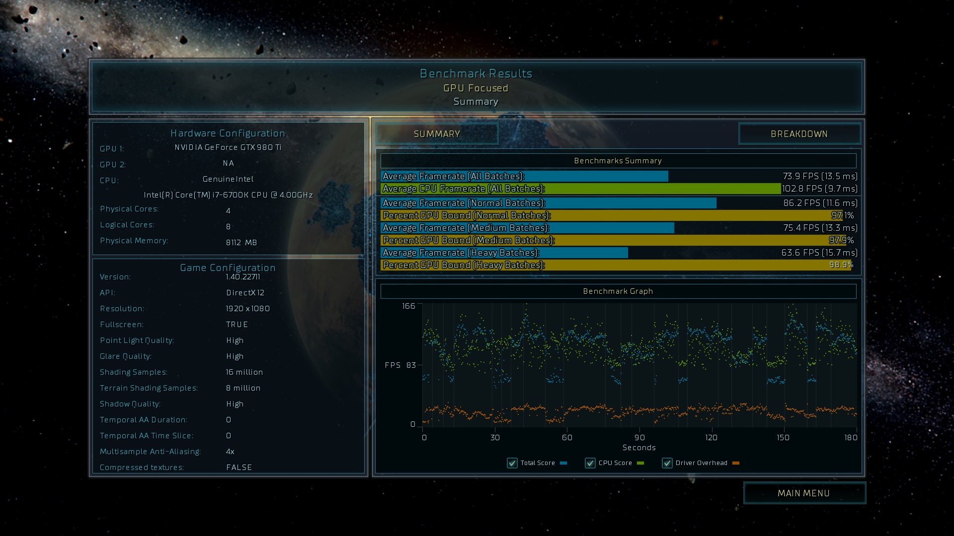 Не смог пока завести вместе 480 и 980Ti в Ashes of the Singularity, при включении опции мульти GPU игра при запуске вылетает. Приведу два скрина теста по отдельности, пресет extreme. HIS RX480 -1400/2100, 980TI - 1480/2025