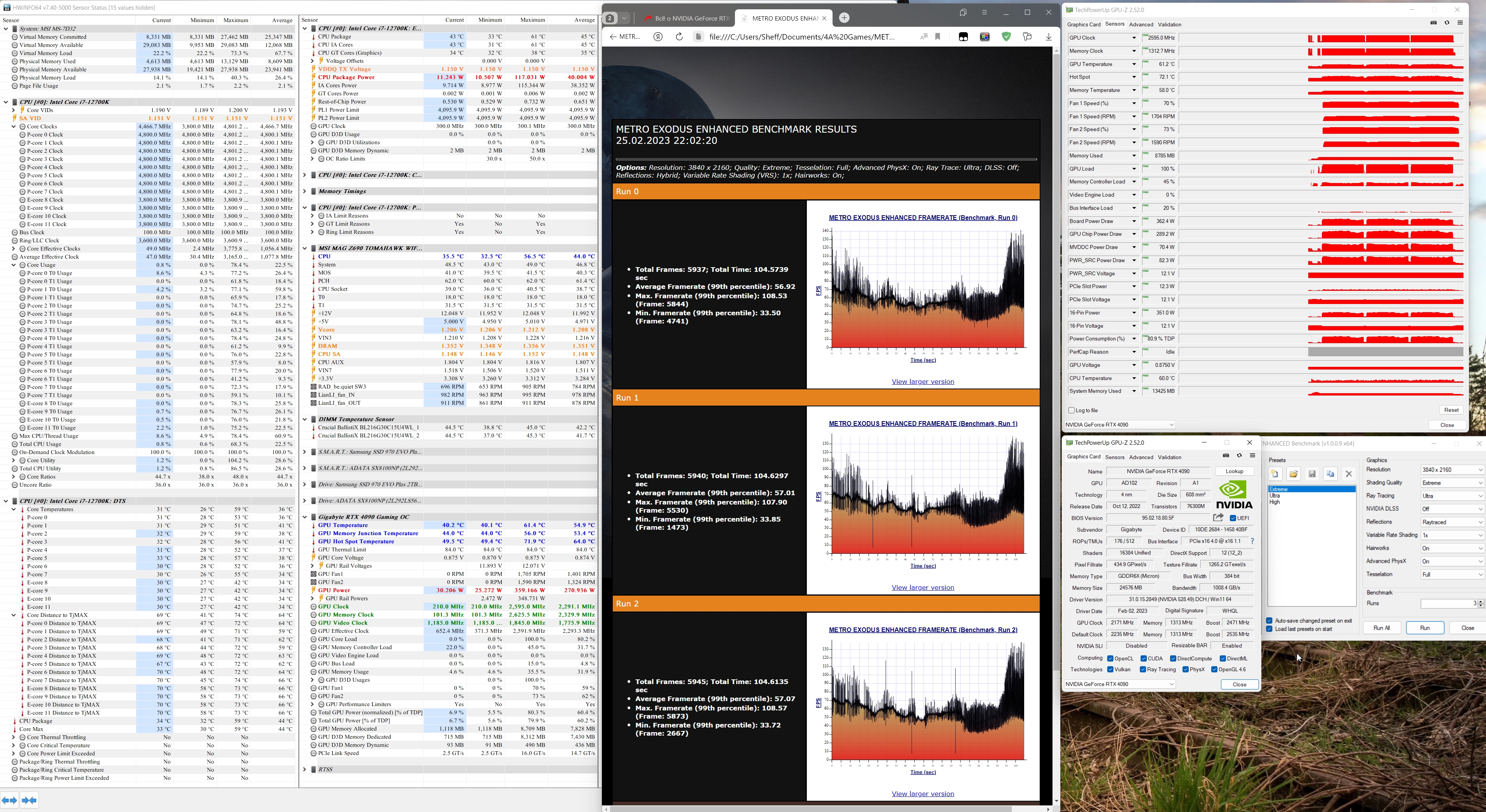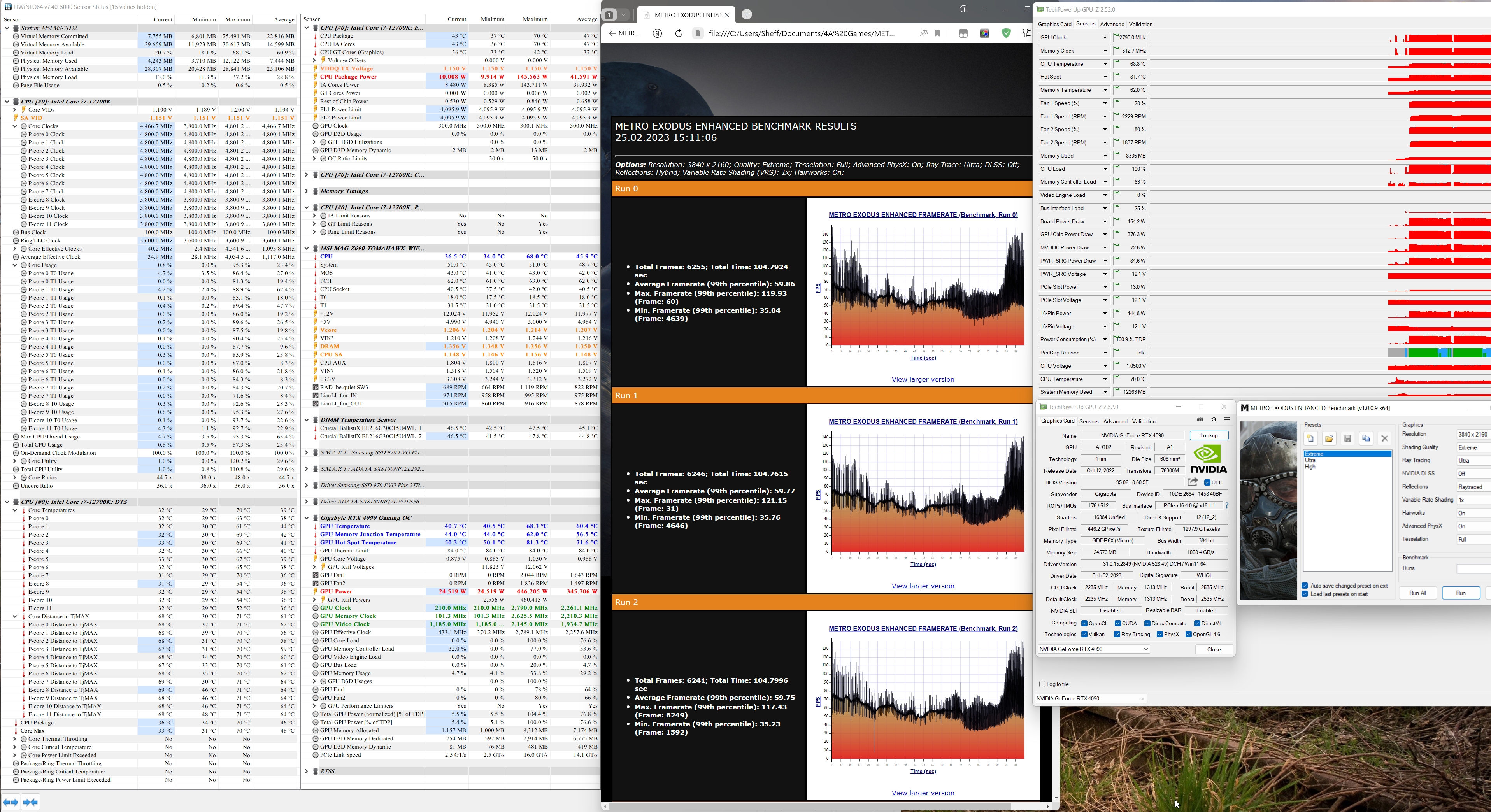 Взял на тесты Gigabyte RTX 4090 Gaming OC. Гонял на профильной системе. Шумная карта. Что в стоке, что в андервольте. В стоке в бенчмарке Metro Exodus (3 прохода) отъедала под 450Вт. Ни о какой тишине тут и речи нет. Но нужно отдать должное: по температурам вполне годная карта.