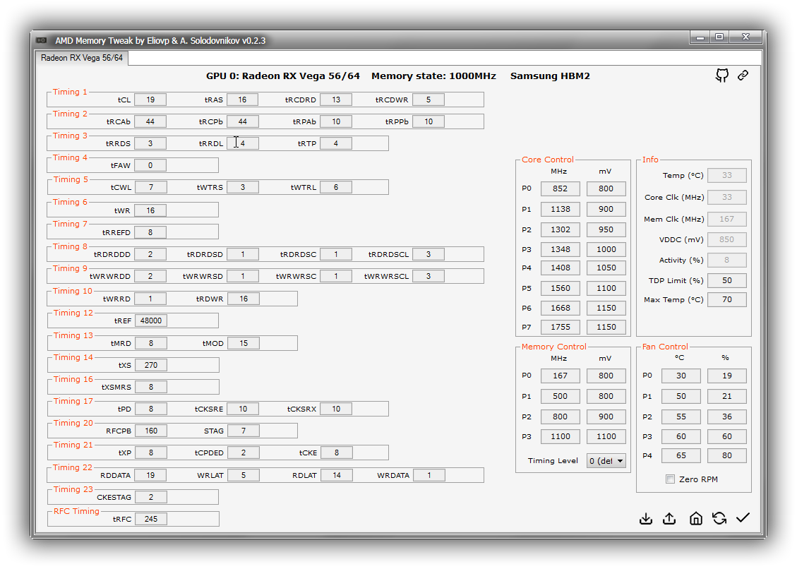Привет.Ок понял.Проверю и отпишусь что получилось с таймингами.(Trcpb и trcab попробуй до 43 снизить. А также TRCDRD можно до 12) Провёл испытания с этими таймингами.....Карта начинает сыпать артефакты и сброс драйвера до заводских.Может на камне немного напругу поднять? Р6-7 стоит 1150 мв частота 1750 мгц, лимит +50 память 1100 мв частота 1100 мгц.