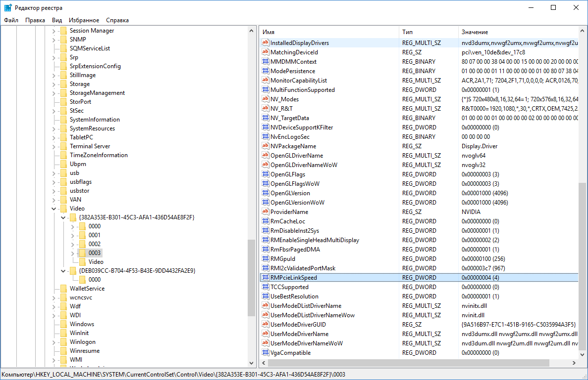 Зашел в папки, а там во всех 3 папках есть параметр "RMPcieLinkSpeed" и везде стоит значение 4