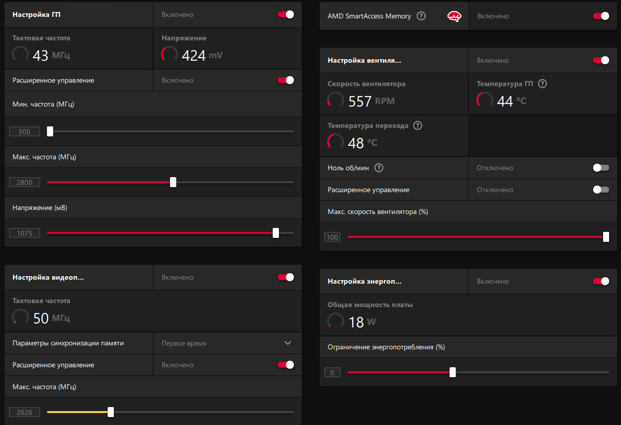 1.Как разогнать видеокарты Radeon 7000-й серии? Важной особенностью архитектуры RDNA3 является то, что разгон GPU даёт линейный прирост fps в играх до 2800 МГц. Т. е. на сколько % разогнали, столько % прирост fps в играх получили. После 2800 МГц линейность разгона теряется, и как не гони и не повышай частоты, Power Limit, прирост fps в играх составляет всего 4-5%. Об этом рассказано в этом обзоре https://overclockers.ru/blog/Vorvort/show/121115/obzor-i-testirovanie-videokarty-asrock-radeon-rx-7900xtx-aqua, раздел Нюансы разгона, где оверклокеры, с помощью множества тестов, выяснили подробности. В синтетических бенчмарках порога в 2800 МГц нет, разгон линейный на любых частотах. Обновление: у одного из владельцев 7900XTX линейный разгон в играх после 2800 МГц GPU, но для этого он разогнал GDDR6 до 2800 МГц. Так как же разогнать Radeon 7000-й серии? Хорошие результаты даёт комплексный разгон GPU и GDDR6. Например на моей видеокарте разгон GPU до 2852 МГц и GDDR6 до 2700 Мгц дал прирост fps 12% в играх, в сравнении с референсными частотами 2500 МГц GPU 2500 МГц GDDR6. Вершиной разгона является андервольтинг. Если вам удалось после разгона снизить напряжение на GPU без потери производительности - поздравляю! Вы сделали очень удачный разгон. 2. Как сделать андервольтинг? У видеокарт Radeon 7000-й серии вольтаж на GPU часто завышен с завода. Снизив напряжение на GPU в драйвере Radeon Software пользователь может уменьшить энергопотребление и нагрев видеокарты без потери производительности. Единственный нюанс - не все игры работают на сниженном для GPU напряжении. Например у меня Radeon 7900XTX в игре Baldurs Gate 3, в 4К ультра, работает на 1.05 В, а в игре Division 2, 4К, кастом настройки (тяжелее Макс.) для GPU требуется 1.12 В. Ещё одним важным инструментом андервольтинга является снижение Power Limit видеокарты. Иногда у геймера в игре очень много fps и ему не нужны избыточные энергопотребление и нагрев видеокарты. Он ограничивает в драйвере Radeon Software Power Limit видеокарты, снижая указанные параметры под нагрузкой, зачастую не теряя производительность в играх. Пользователь может сочетать оба инструмента для андервольтинга, получая отличные результаты. 3. Как решить проблемы штатной эксплуатации "воздушных" Radeon 7900XTX при перегреве hot spot? В теме были жалобы владельцев Radeon RX 7900XTX на перегрев hot spot при штатной эксплуатации. Проблема заключалась в штатном термоинтерфейсе, который выдавливало радиатором системы охлаждения. Решается она заменой штатного термоинтерфейса на термопасту с фазовым переходом. Автор F. A. Q. не несёт ответственности за манипуляции с видеокартами, пользователи делают их на свой страх и риск. 4. В каких играх Radeon RX 7900XTX показывает высокую производительность в 4К с ультра настройками? (без RTX Nvidia) 15 проектов, где 7900XTX была на равных или минимально отставала от 4090: AC: Odyssey, Far Cry 6, AC: Valhalla, Cyberpunk 2077, RDR2, CoD: MW2, Remnant 2, Hogwarts Legacy, Starfield, BG3, Immortals of Aveum, Ratchet & Clank: Rift Apart, Fortnite (DX12, HW RT, Nanite epic, Lumen epic), Horizon Forbidden West, Dragon's Dogma 2. С трассировкой лучей и высоким fps в 4K ультра на Radeon RX 7900XTX можно поиграть только в Doom Eternal, Marvel's Spiderman remaster, Far Cry 6.