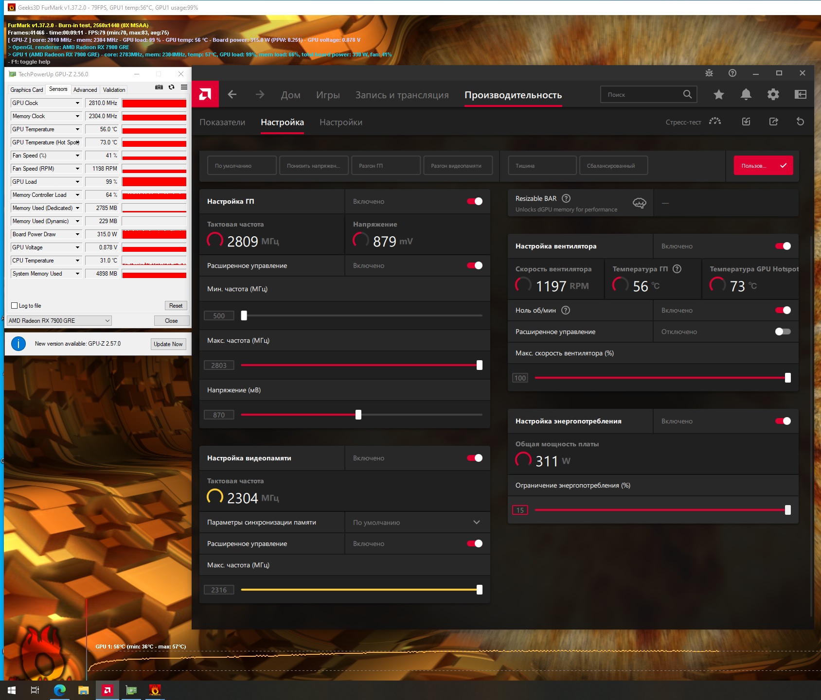 У тебя SAM (Resizable BAR) отключен (судя по скрину настроек драйвера). Эта технология много где даёт прирост fps. Память лучше гнать в комплексе с GPU, что ты и сделал. В принципе разогнал карту почти по максимуму (ещё SAM включить), радуйся.