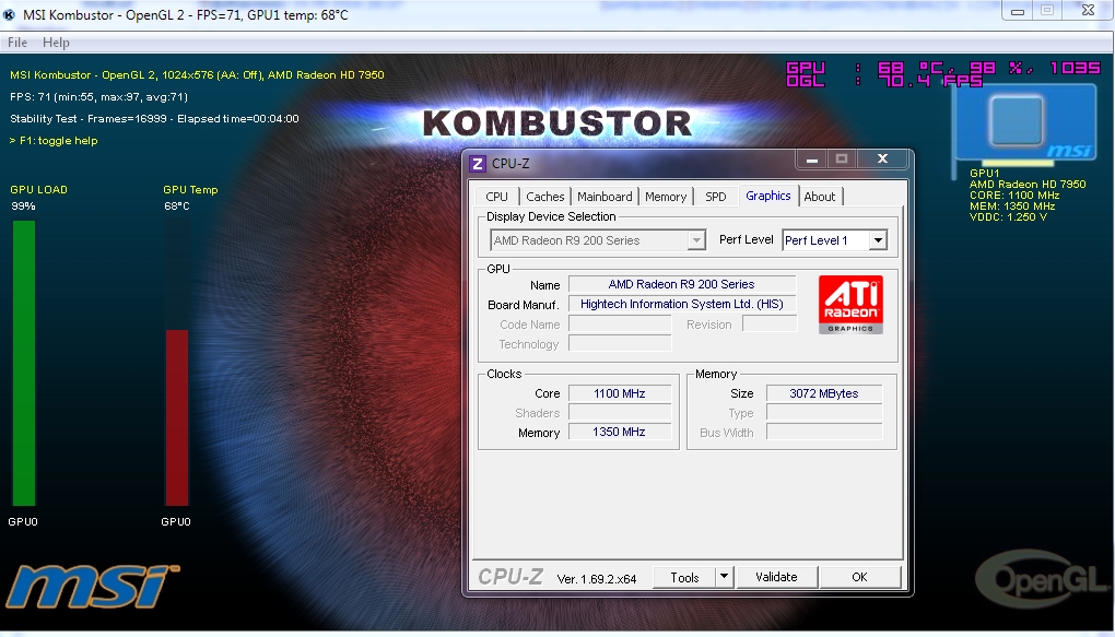 Странная вещь, прошил свою Asus HD7950-DC2T-3GD5-V2 в Powercolor HD 7950, биос этот: HD 7950 3072 MB, а на выходе получилась R9 200 cерии да еще HIS, хотя в тесте комбустер осталась 7950, что за бред?
