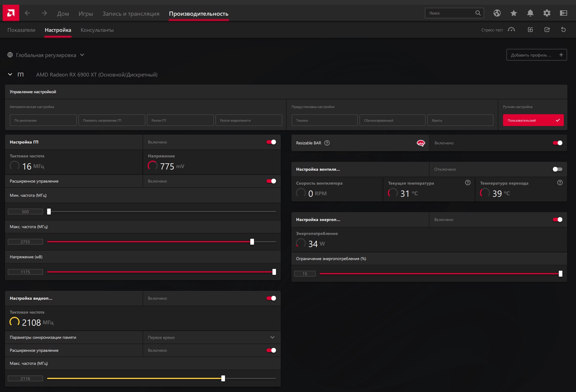 - Установить последнюю версию Windows 10 1903/1909. Как это сделать можно прочитать здесь https://www.microsoft.com/ru-ru/softwar ... /windows10. - Осуществить подключение питания карты рекомендуется двумя отдельными кабелями во избежание возможных проблем с блоком питания, с самими кабелями и пиковым потреблением. - Использовать блок питания рекомендуемой производителем карты мощности. - Необходимо учитывать, что некоторые запущенные программы по мониторингу (afterburner, gpu-z и подобные) могут вызывать различного рода проблемы в работе карты и поведения карты в игре (статтеры, снижение fps, сбой в работе вентиляторов). В некоторых случаях были проблемы c оверлеем Adrenaline. (данная рекомендация может считаться устаревшей, в случае использования последних версий драйверов и обновлений Windows). - Разгон оперативной памяти может вызывать статтеры, вылеты или черные/синие экраны, если он был произведен без должного тестирования памяти на стабильность. Поэтому перед проверкой карты и ее разгонного потенциала рекомендуется сбросить разгон процессора и памяти. - Порядок установки новой карты: установить новую ОС -> установить драйвера чипсета -> установить прочие драйвера -> установить драйвер видеокарты. - Рекомендуется переустанавливать драйвер после переключения БИОСа на видеокарте, чтобы он (драйвер) корректно интерпретировал новые настройки (эта рекомендация Sapphire, написанная на бумажке, которая вложена в коробку с видеокартой). - Рекомендуется заполнить табличку OC potential of RX 6000 series - Проверить карту стресс тестами и играми (в том числе при при разгоне) в стоке со сбросом любого разгона (в т.ч. памяти и процессора): 3DMark Time Spy, тест на стабильность, 20 прогонов - Одна из рекомендаций по отлову черных экранов и проверки системы на стабильность: LinX (задачи 40000) + Kombustor (1080р), вместе включаем и смотрим приблизительно полтора часа. Предварительно выкрутить вентиляторы карты и системы на максимум во избежание перегрева.