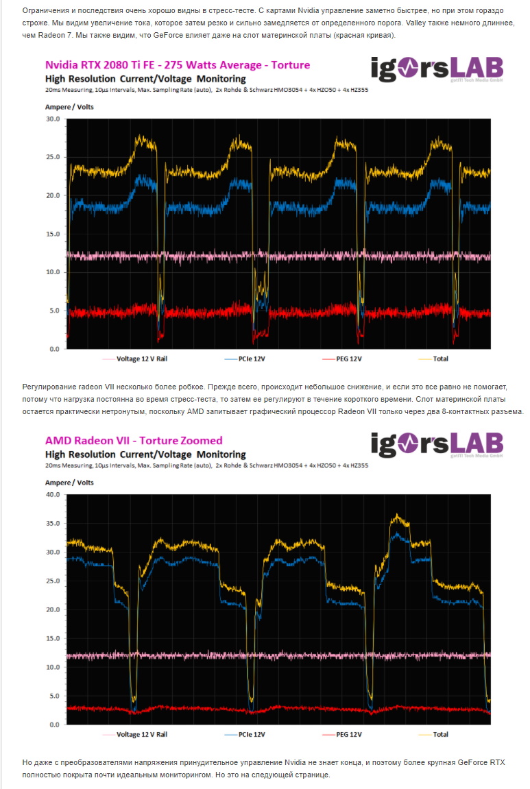 Watercool74 Все производители видеокарт указывают среднее энергопотребление (при бесконечным времени работы оно стремится к нему), видеокарта будет стараться удержать это энергопотребление, хотя может и превысить его. Любая электронная и механическая защита физически не может ограничить энергопотребление, защита должна сперва его зафиксировать, а потом принять меры для его устранения вот тут есть пример как это работает на видеокартах Power Consumption: TDP, TBP and TGP for Nvidia and AMD graphics cards calculated with destruction of a PR film | igorsLAB. В даташитах, на которые вы ссылаетесь скорее этого максимальная нагрузка при длительной работе. Среднее энергопотребление осталось нормальным 210 Вт. Для Radeon™ RX Vega64 8GB HBM2 LC заявлено 375 Вт, а пик может превысит и 500 ВТ. На http://www.igorslab.de и http://www.tomshardware.com Igor Wallossek делает замеры энергопотребления для видеокарт, Radeon™ RX Vega64 8GB HBM2 LC он замер не делал, но делал для Overclocked and boiled: AMD Radeon RX Vega64 water-cooled 476 Вт пик (50 мс)