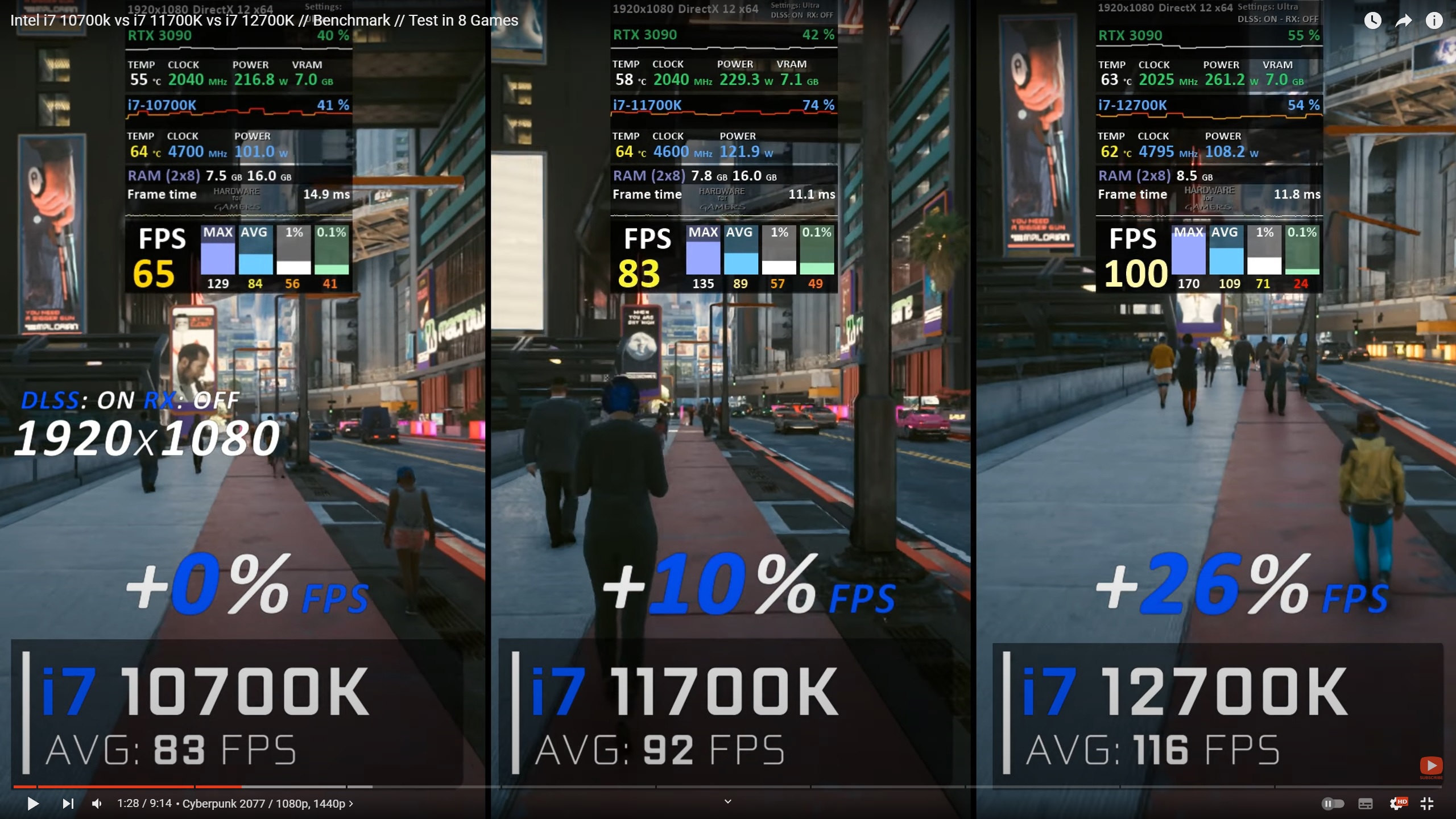 Ну-ну) Четырехъядерный 12100 просаживается и фризит в тяжелых играх типа Киберпанка, а восьмиядерный 10700к тянет их без проблем) Плюс мой разогнанный с разогнанной топовой памятью все же пошустрее стокового будет.