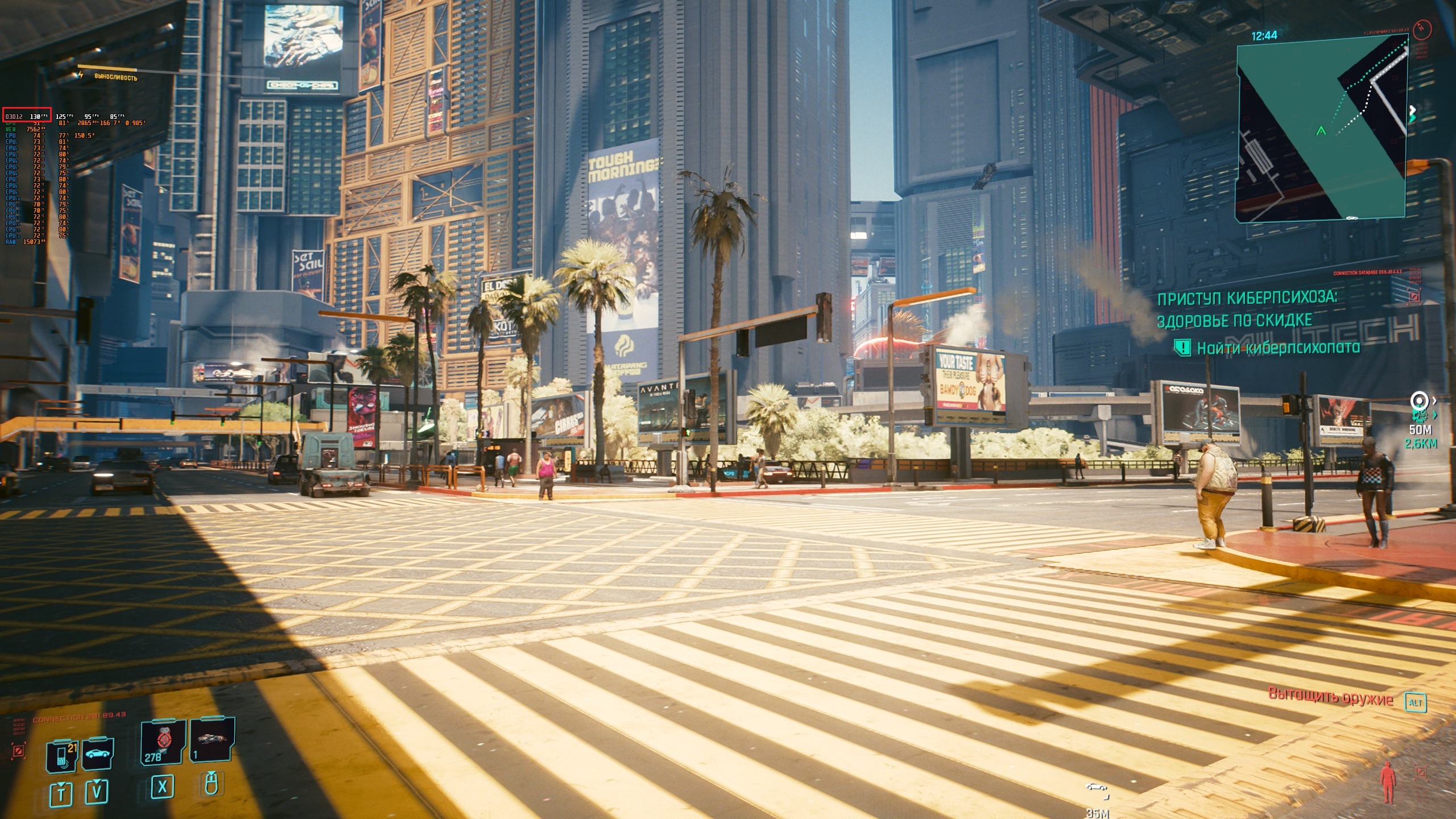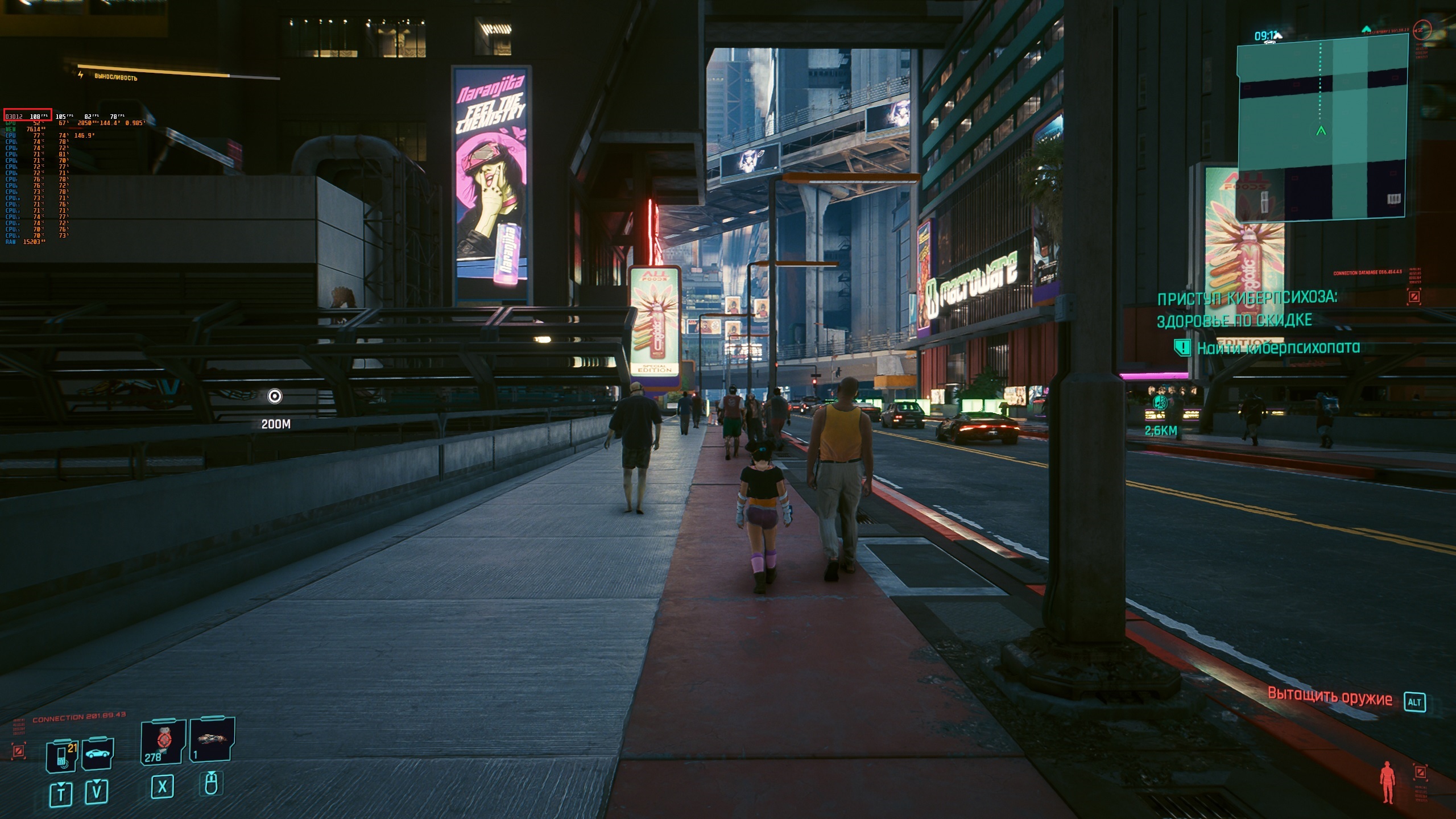 Разгон +200 чип, +700 память, разблокирован вольтаж, power limit выкручен на максимум. Настройки в игре всё на максимум 107 ФПС при 560-570 ваттах потребления, температуре под 80 градусов и 2000+ оборотах кулеров https://www.youtube.com/watch?v=lsXO9sGkmHw