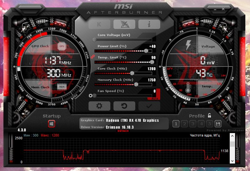 Q: По мониторингу напряжение на GPU немного отличается от установленного. A: Реально напряжение выставляется кратно 6.25 и округляется в большую сторону. То есть, если Вы выставили 1137, то реально у Вас будет 1137.5, а если выставили 1138, то уже реально будет 1143.75 мВ.