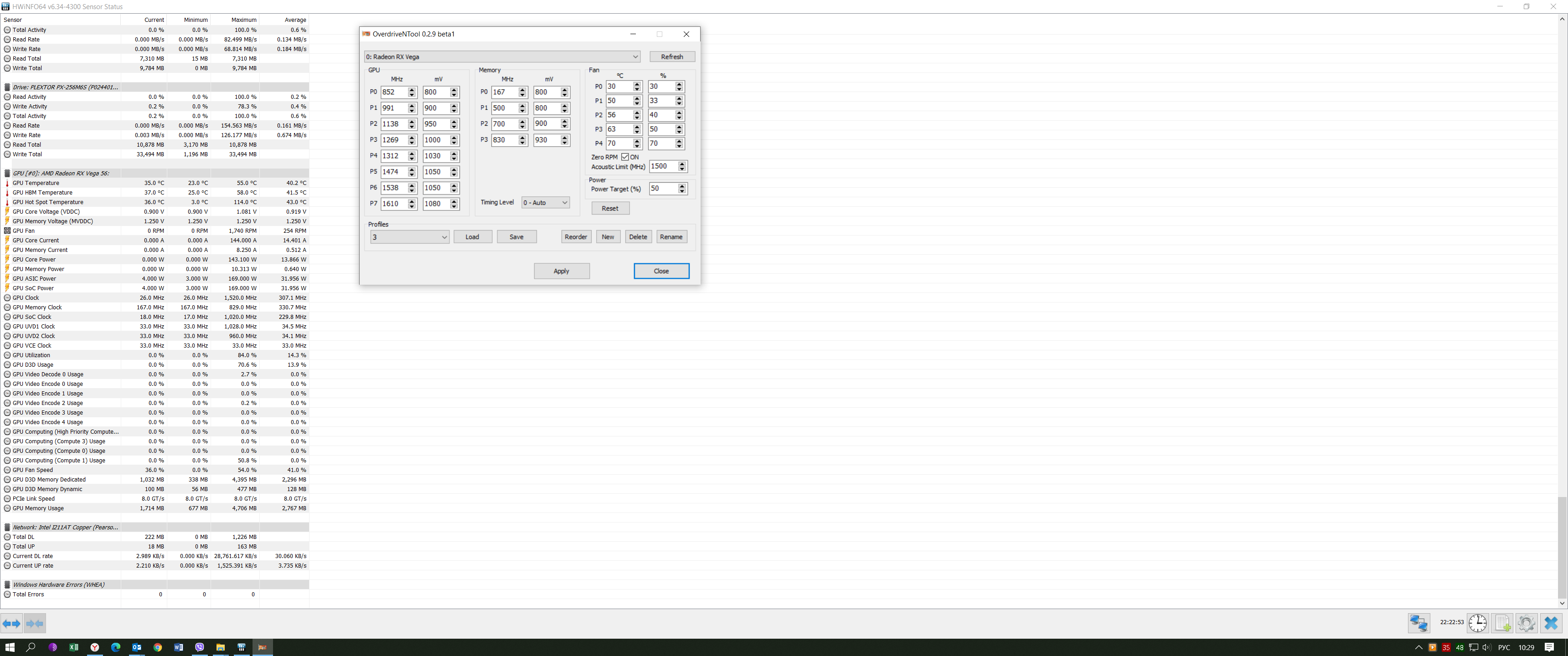 Добрый вечер! Подскажите в чем проблема, купил Vega 56 реф ASrock при любом вмешательстве в разгон памяти или ядра, вистема просто виснет (пропадает картинка, черный экран) помогает только перезагрузка. Драйвера пробовал разные от самых первых с гайдами по разгону, до самых актуальных. Пробовал делать downvolting через драйвера, watt, vegatweek и т.п. при этом стоковыми средствами, через драйвера авторазгон ГП и ВП, понижение напряжения работают нормально. Какие данные нужны для решения мой проблемы, пожалуйста скажите, всё распишу! Цель понизить напряжение на ГП для снижения температуры и избавиться от снижения частот. Заранее спасибо!