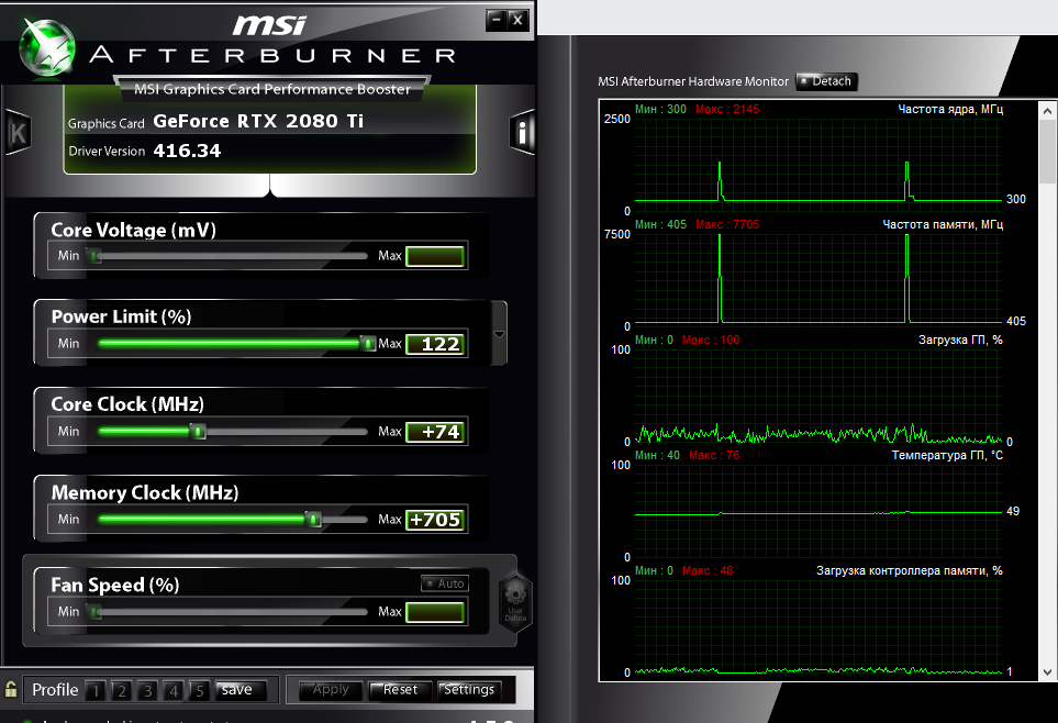 Michailovsky Пока стабильно ничего не играл. Щупаю лимиты. Разгон труха на самом деле. +74 по ядру накинул. Но на новом биосе карта на автовентиляторах уже до 76 прогревается. Хотя все еще не слышно.