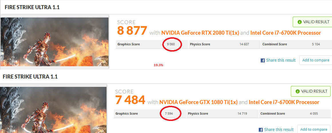 ZAMHome Я скрин разгона по ядру выкинул. Показать, что даже 100 не накинул. Скрин мониторинга меня никто не просил. Вот еще прошел. Firestrike ultra против 1080ti.
