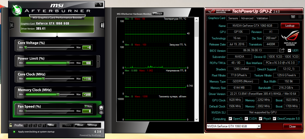 у меня по ядру 2000 мгц на 925мв курвой выставил память 9200 нагрев не более 62 был в самый жаркий день летом сейчас 55 показывает Asus GeForce GTX 1060 STRIX OC [STRIX-GTX1060-O6G-GAMING]