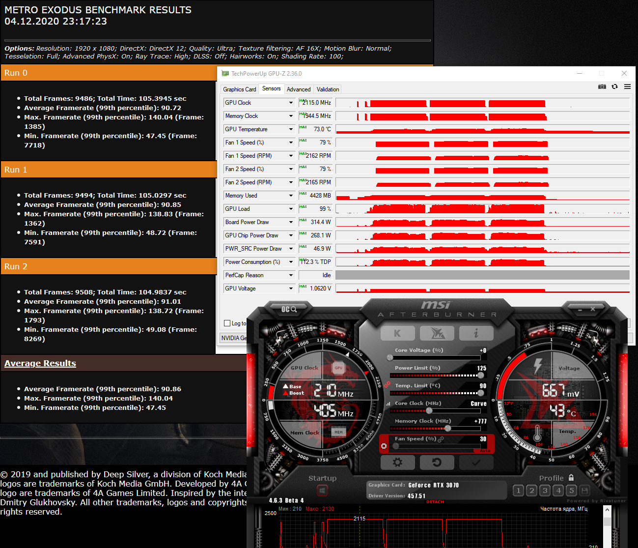 16.09.2020 - создание темы, добавление ссылок на обзоры RTX3080 17.09.2020 - обзоры Palit RTX 3080 GamigPro OC, MSI RTX 3080 Gaming X Trio, Asus TUF RTX 3080, Zotac RTX 3080 Trinity, информация по блокам питания 19.09.2020 - обзор Gigabyte RTX 3080 Eagle OC 10G, Nvidia RTX 3090 22.09.2020 - косметические правки, добавление ссылок 23.09.2020 - добавление базы данных с сайта overclock (спасибо coka) 24.09.2020 - добавление обзоров 3090 26.09.2020 - полезная информация по видеокартам Аmpere (алгоритм работы вентиляторов, причины проблемы с boost), и другое 30.09.2020 - дополнение к полезной информации, добавление обзоров RTX 3090, правки в оформлении 02.10.2020 - начато заполнение F.A.Q. 06.10.2020 - начат сбор статистики по видеокартам 08.10.2020 - добавлена информация по видеокартам Palit RTX 3080/3090 серии GamingPro и GameRock от Palit Support 09.10.2020 - в F.A.Q. добавлена информация по видеокартам Palit, поддержке VRR и прошивке BIOS. Косметические правки 10.10.2020 - добавлены ссылки на обзор архитектуры Ampere. В F.A.Q. добавлена информация по GPU Boost и лимитам. 29.10.2020 - добавлены обзоры на RTX 3070 от разных вендоров 31.10.2020 - информация по драйверам 04.10.2020 - в F.A.Q. добавлено пособие по работе с кривой MSI Afteburner 06.11.2020 - изменения в F.A.Q. по отличию видеокарт Palit 18.11.2020 - добавлена информация в F.A.Q. по BIOS от Palit и EVGA 20.11.2020 - дополнен F.A.Q. (достаточность RTX3000 для FHD/QHD/4K мониторов) 25.12.2020 - дополнена полезная информацию по картам 28.01.2021 - пример настройки курвы 03.02.2021 - обзор EVGA 3080 с андервольтингом 04.03.2021 - добавлена информация по замене термопрокладок на RTX 3080 31.03.2021 - добавлен BIOS с поддержкой Resizable BAR от Palit 05.08.2021 - добавлены обзоры 3080, 3080Ti, 3090 от occlub 12.02.2022 - добавлена информация по термопрокладкам 21.02.2032 - добавлена информация по термопрокладкам от T[]RK