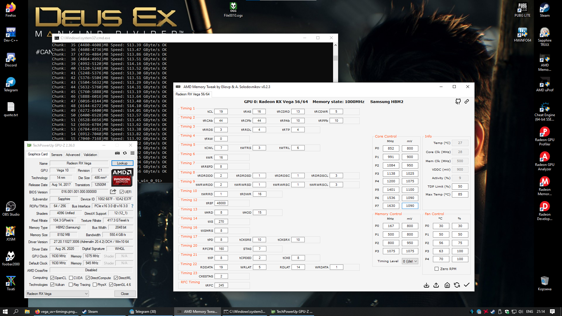 Добавлено спустя 5 минут 48 секунд: Вот на тех же таймингах от Форса, но с частотой памяти 1075. Комбустор я на таких настройках не пускал, но за 125 часов киберпанка ничего не вылетело по вине дров/видеокарты.
