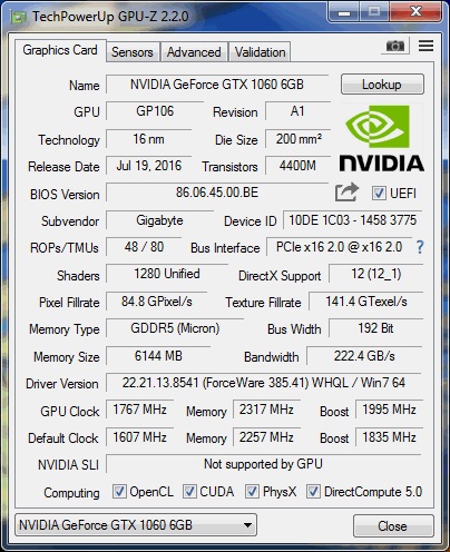 Привет всем. Недавно заказал на КУ 1060 от гиги аорус 6гб 1ю ревизию 9Gbps, но я смотрю, я уже не один тут такой, кому прислали вторую ревизию. Ладно..хрен с ним. У видеокарты чипы МИКРОН. Видяха совершенно не гонится. Максимум 160 ядро и 120 память. Есть у кого нибудь соображения, что делать? винда 7х64. гнал через MSI Afterburner последней версии. Дрова нвидии 385.41