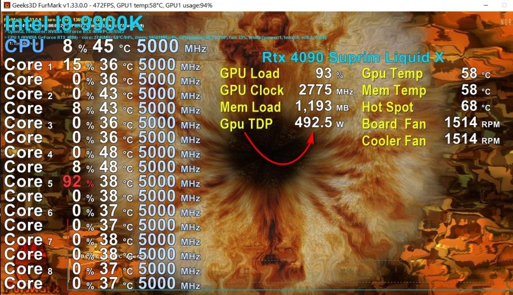 купил 4090 gaming OC, .........смотрю обзоры у всех она в фурмарке 450 Ватт потребляет, а у меня еле до 360 доходит с поднятым в афтербернере павлиме до 133%... У меня проц "староватый" - 9900К 5.1 с выключенным ГТ....