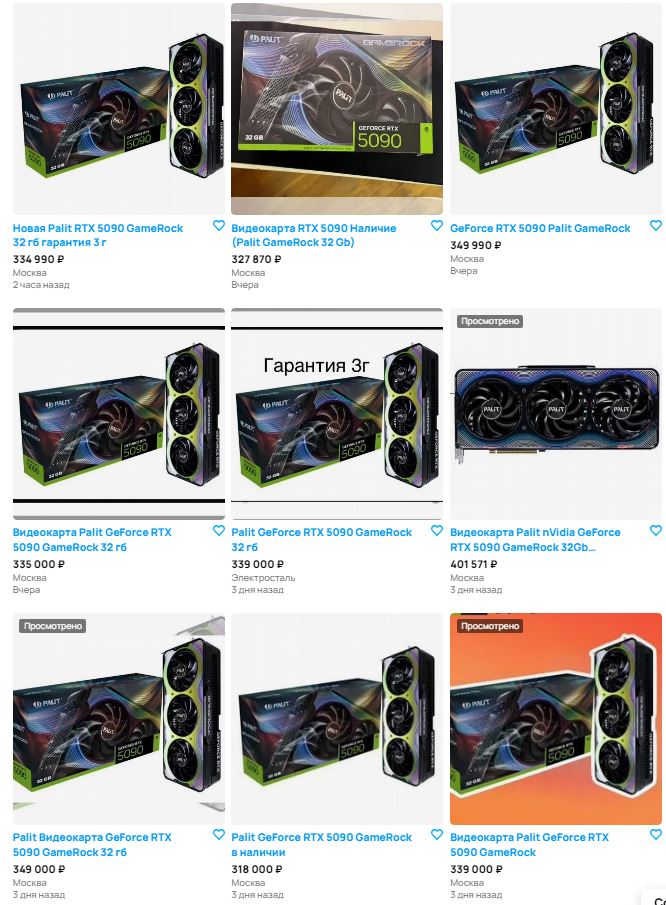 Камрады, всем привет! На озоне были 5090 палиты на очень короткий промежуток времени по 300к, потом цена поднялась до 437к и все карты по этой цене были разобраны (штук 100 их было где-то) Вообщем я успел выхватить одну карту по 300к, завтра-послезавтра должна приехать и буду ее мучить Проверка наличия всех ропов первостепенная задача