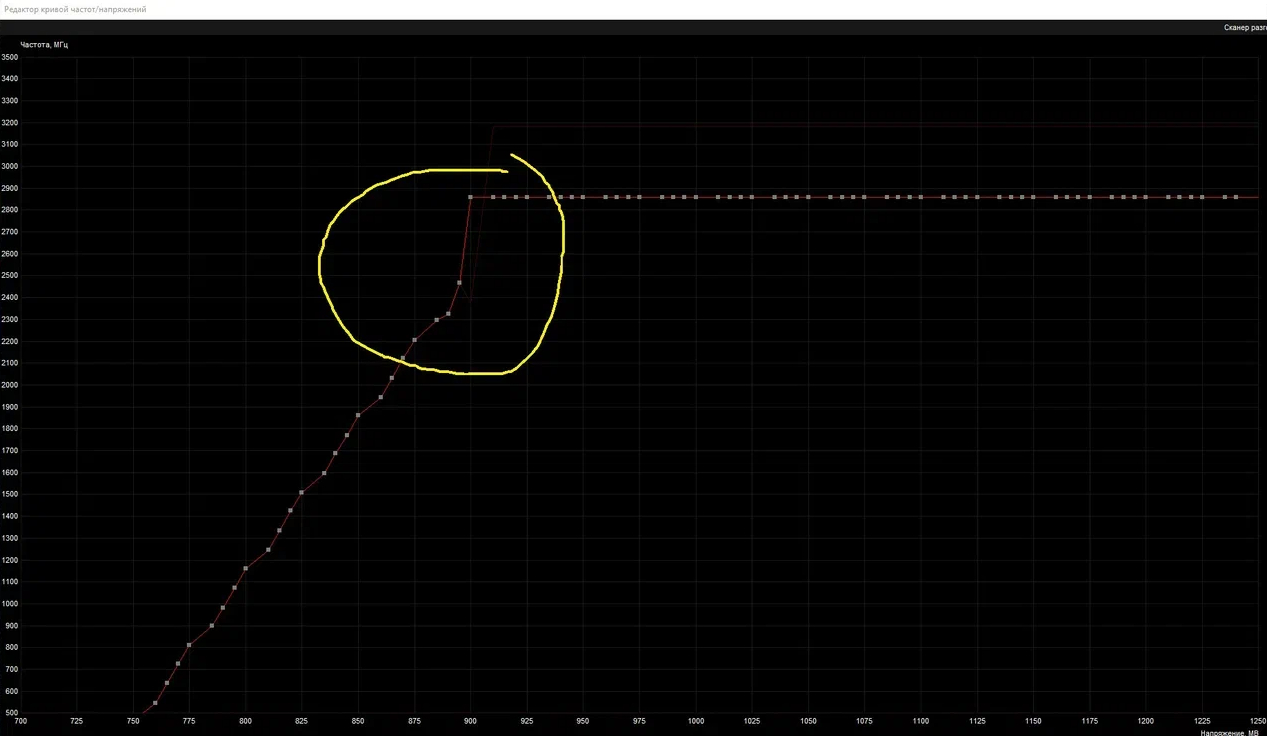 Нужно всю курву вверх тянуть или ползунок вправо двигать, а потом ровнять, если делать как на скрине, то будет очень плохо работать, примерно как в стоке но с ограничением напряжения в 890-895 мВ