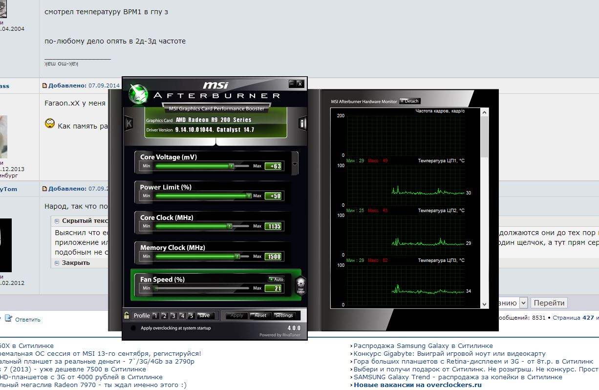 Да.При при +45 по чипу стабильно 1100 и пока 1400 память.Что за зависимость не понятно но память погналась правда 1.273 в пике нагрузке как то не айс. температура 70,график изменил слегка.