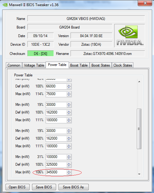 Информация от участника темы: Аффторитет Приведу пример как разгонять карты 970/980/980ti по таблице буст частот. Не буду писать как бекапить/сохранять биос, как и какие ставить поверлимиты - все это есть в шапке темы в инструкции по разгону. Образцом к материалу будет моя MSI GTX970 gamming 100ME. Поиграл я с разгоном в Afterburner-e и решил зашить разгон в биос. Задача разогнать карту бустом до 1506МГц при напруге в 1.231в. Начинаем.
