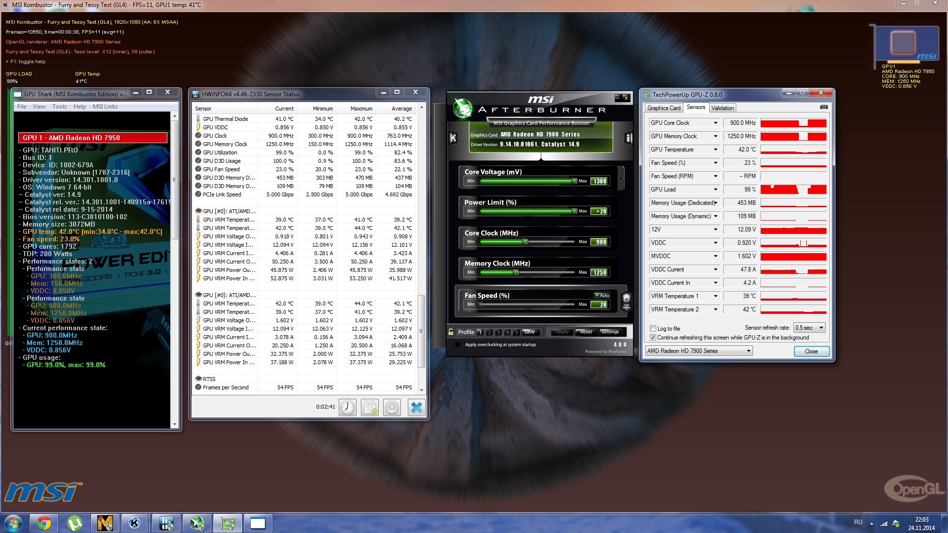 ГП1 ________________________________________________________________________________ Видеоадаптер : AMD Radeon HD 7900 Series на процессоре Tahiti Видеодрайвер : 9.14.10.01061, Catalyst 14.9 BIOS : 015.013.000.010 Идентификатор : VEN_1002&DEV_679A&SUBSYS_23161787&REV_00&BUS_1&DEV_0&FN_0 Ключ реестра : \Registry\Machine\System\CurrentControlSet\Control\Video\{0B036FF0-69D5-4A4B-9AA5-7032869AEE82}\0000 Контроллер VDDC : CHL8228 на I2C шине 6, устройство 30h Контроллер MVDDC : CHL8228 на I2C шине 6, устройство 30h