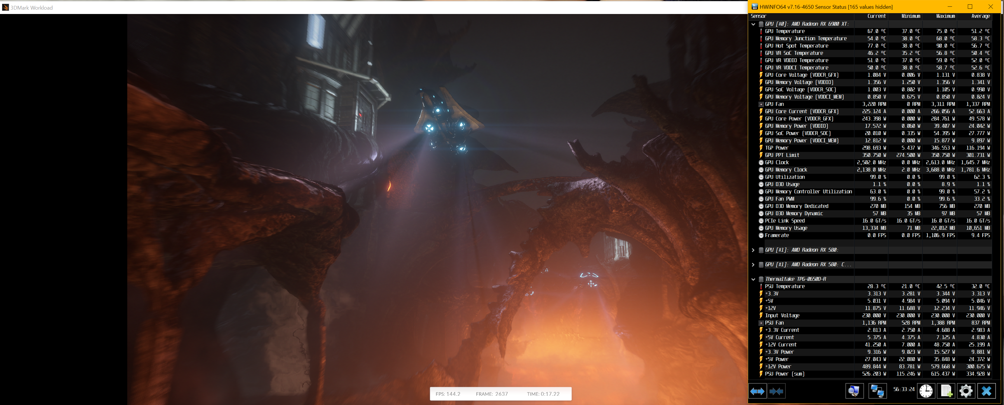 Короче каждый день какая-то новая шляпа. Начал замечать следующую фишку, ну карта по прежнему работает на высоковатых температурах, причём смотрю по своим видосам, которые ранее записывал греется именно у края, а хот спот вырос совсем незначительно на пару градусов где-то или где-то точно такой же, а вот у края уже до 75с доходит иной раз при 100% вертушках, память нормальной температуры. Вроде как на моей карте там общая трубка радиатора идёт и на гпу, и на память. Я так понимаю если хот спот почти не вырос и память не греется, то с теплотрубками радиатора наверное всё ок или не? А вот чего точно не было так это периодического писка, вроде как на писк дросселей похожий, не постоянный но иногда появляется в АК Вальгалла, Фар Край 6 и Ghost Recon Wildlands. Особенность этих игр в том что они почему-то вроде и грузят карту на 99%, но её энергопотребление в них значительно ниже, на ртх 2080s тоже так было (в этих играх энергопотребление вместо 250 ватт было в районе 220). В указанных играх 6900хт ест 250-260 ватт со скачками до 290, обычно в стоке она у меня в других играх стабильно 325 ватт ест и никакого писка я не слышу от неё, это причина в цепях питания карты или может мой старый БП, которому 10 лет от роду делает мне нервы? В остальному тьфу-тьфу работает нормально, или Асрок такой производитель, или мне с картой не фортануло так