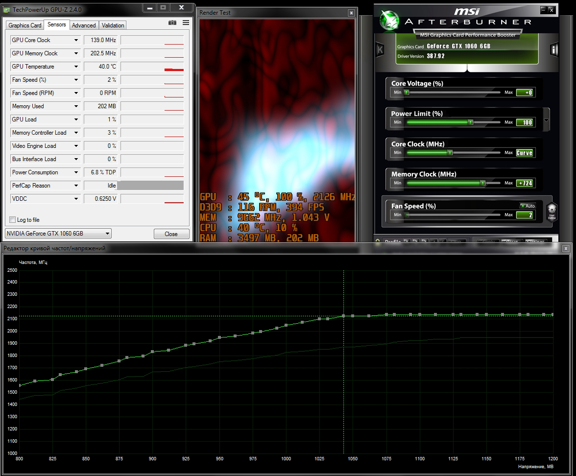 При работе Fire Strike напряжение держится на 0.9-1v, при таком напряжении на 2100 (кривыми подгонял) сразу виснет. Работает только на 2050-2070. При сильном поднятии кривых, сразу стартует с напряжений 1.09, но для этого надо выставить частоту для этого напряжения свыше 2140 - что опять-же приводит к зависанию, получается, либо он стартует на низких напряжениях с 2050, либо на высоких с 2130+.