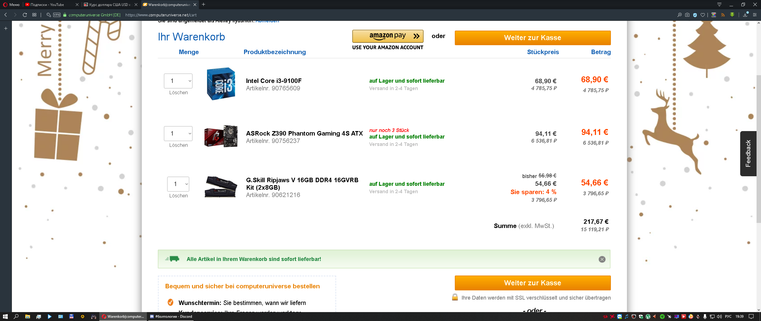 Добавлено спустя 7 минут 32 секунды: На КУ i3 9100f + мать на z390 + gskill ripjaws 3200мгц 2х8 Гб за 17к.р. с доставкой взять можно.
