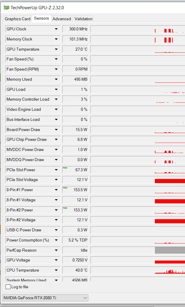 Запустите GPU-Z (самый свежий), откройте и растяните окно с датчиками мониторинга, прогоните тот же тест порт рояла, на вкладке мониторига щелкните по датчикам потребления PCI-E, PIN8 №1, PIN8 №2 до появления маркера Max, покажите скрин.