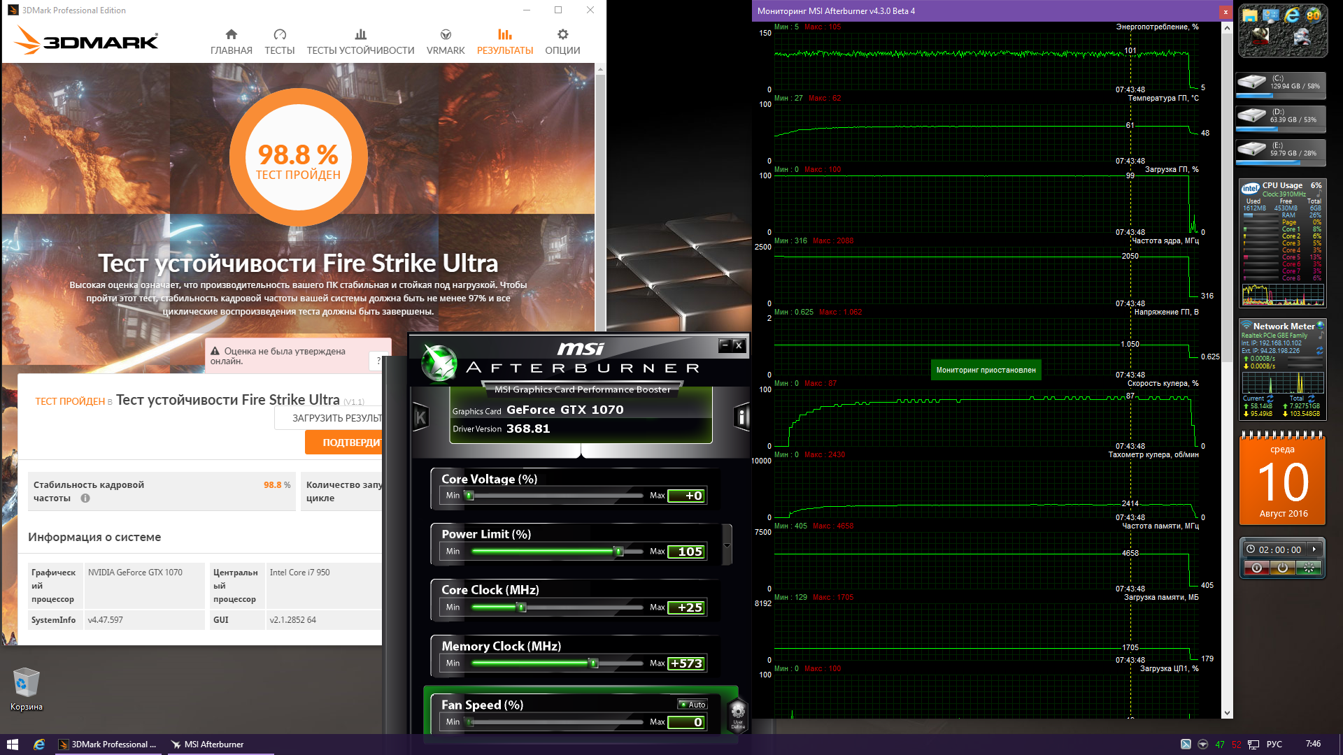 Побегал вчера ведьмак 3 со всеми возможными графическими опциями "в шишку" (волосики, сглаживалки и т.д). 60 fps (1080р) стабильняк как утренний стояк. Временами загрузка карты доходит до 90%+, температура 71-73 при 50% оборотах.. 105 повери лимит и чуть чуть по частотам поднял (процентов 5). Надо будет поиграть с кривой для вентиляторов, думаю до 60-65% я не буду слышать карту. Вопрос: где настраивать эти обороты?)) Вопрос 2: и всё же мне кто-то ответит как исправить косяк с ошибкой при запуске приложения msi? И нужно ли оно вообще? Там кроме подсветки ничего толкового и эксклюзивного нет? Там же какие-то режимы разгона. Типа без проги она без разгона пашет. Или я что то не итак понял? В теории этот же разгон я могу сделать и через афтобёрнер руками?