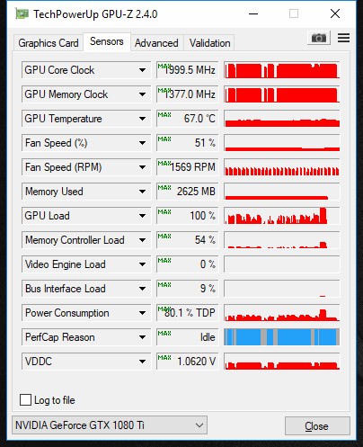 Там показывает текущие показатели, а необходимо чтобы отобразились максимальные . Нужно нажать на значение, чтобы появилась зеленая надпись max. Интересуют строчки(GPU Core Clock, GPU Memory Clock, GPU Temperature, Fan Speed, Power Consumption и VDDC). Хотя бы в 3DMark Time Spy прогони, но было бы не плохо если бы в Battlefield 1 или в чем нибудь требовательном глянуть.