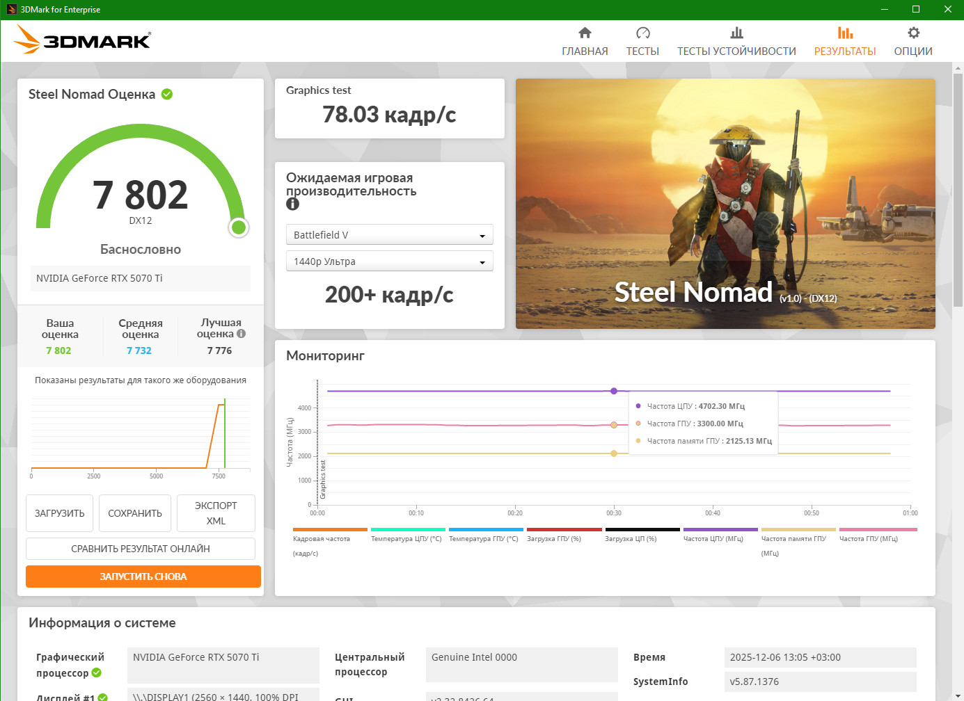 gladvalakas1, было бы странно, если было иначе, зачем тогда Хуанг вообще делит карты на модели:) разогнанная 5070Ti может дышать в спину стоковой 5080 разве что в играх, т.к. те, за редкими исключениями, не утилизируют все блоки в полной мере. IPSWICH, серьезно? Это даже не 1% прироста к вашему предыдущему результату. Просто погрешность от прогона к прогону У gladvalakas1 результат выше моего на 3.5%, хотя у его процессор намного серьезнее моего. Да и то результат так себе, кукурузы много, если учесть, что моя частота GPU Это 2865 Мгц, а у него около 3300 Мгц, а это ~15% разницы.