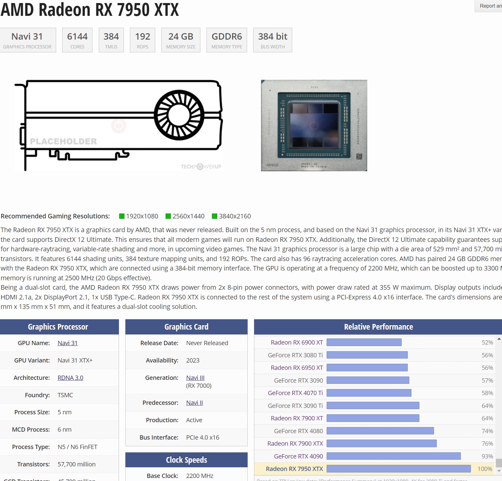 по данным сайта теч повер ап, предварительная производительность будет выше 4090. производительность будет достигаться за счёт рекордных тактовых частот >3 ггц, до 3,3 ггц. сайт авторитетный, внизу рейтинг производительности по их версии
