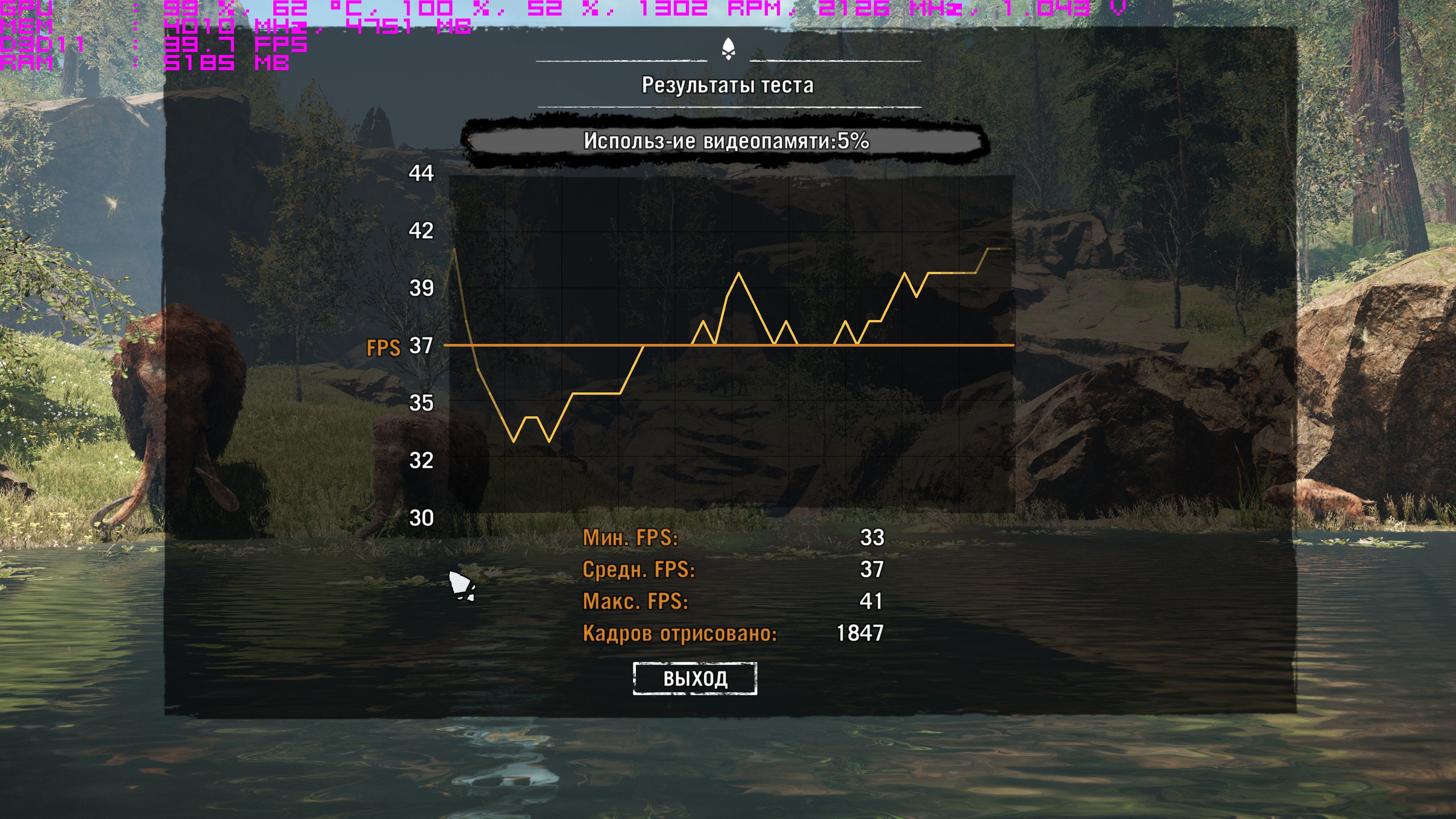 без разгона 47-60фпс, с разгоном до 2114 54-65фпс, без сглаживания 60-81, макс видел 93 на Осаде Шанхая