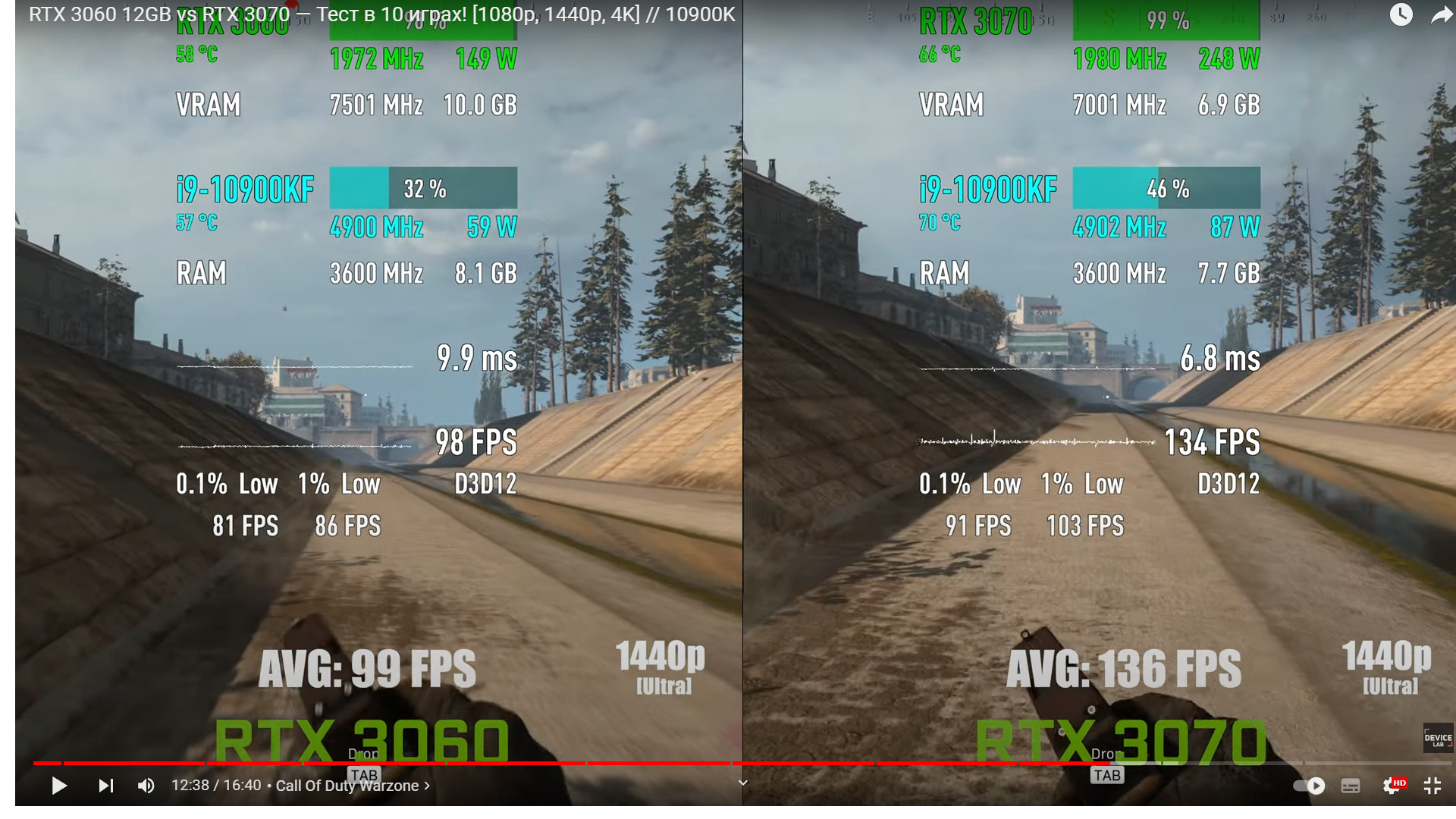 P.S Вот пример 3060 12 гб и 3070 8гб что картинка улучшилась от 12 гигов и посмотри потребление видеопамяти у 3060 10 гигов сжирает, а у 3070 меньше 7, а а фпс при этом больше