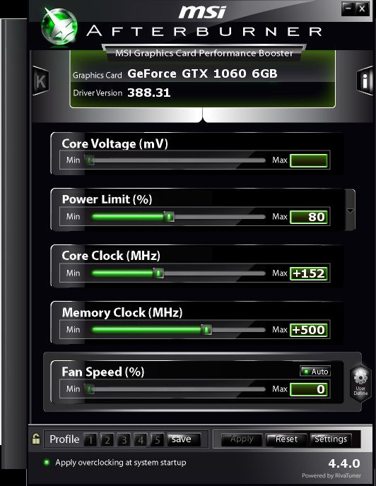 Sultan_SPb На старом драйвере (382.05) и со старым АВ кривая напряжений была такая, как я её выставлял. На новом драйвере (388.31) и с новым АВ кривую хоть как прямлю - всё равно после применения немного изменяется. Опять ставлю старые драйвера и прогу - курва прямая. Ставлю новое - курва живёт своей жизнью. Выводы для себя сделал.