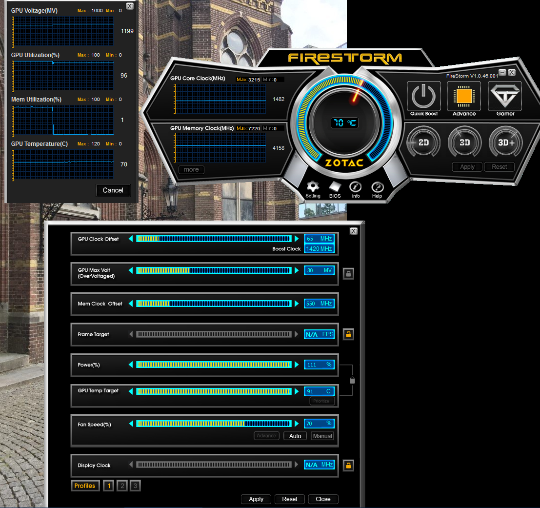 Я понимаю, но Zotac я брал ради 5 лет гарантии. И они сами дают утилиту для разгона. При разгоне уперся в 111% лимит. Без разгона памяти частота была стабильна на 1510. Биос шить не хочу, так как самолёт (скорей всего без гарантии надо читать условия на сайте) мне не нужен. Поэтому сейчас оставил на постоянно 1480 с просадками до 1420(при полной загрузке памяти)/8316. Не шумит и всё летает.