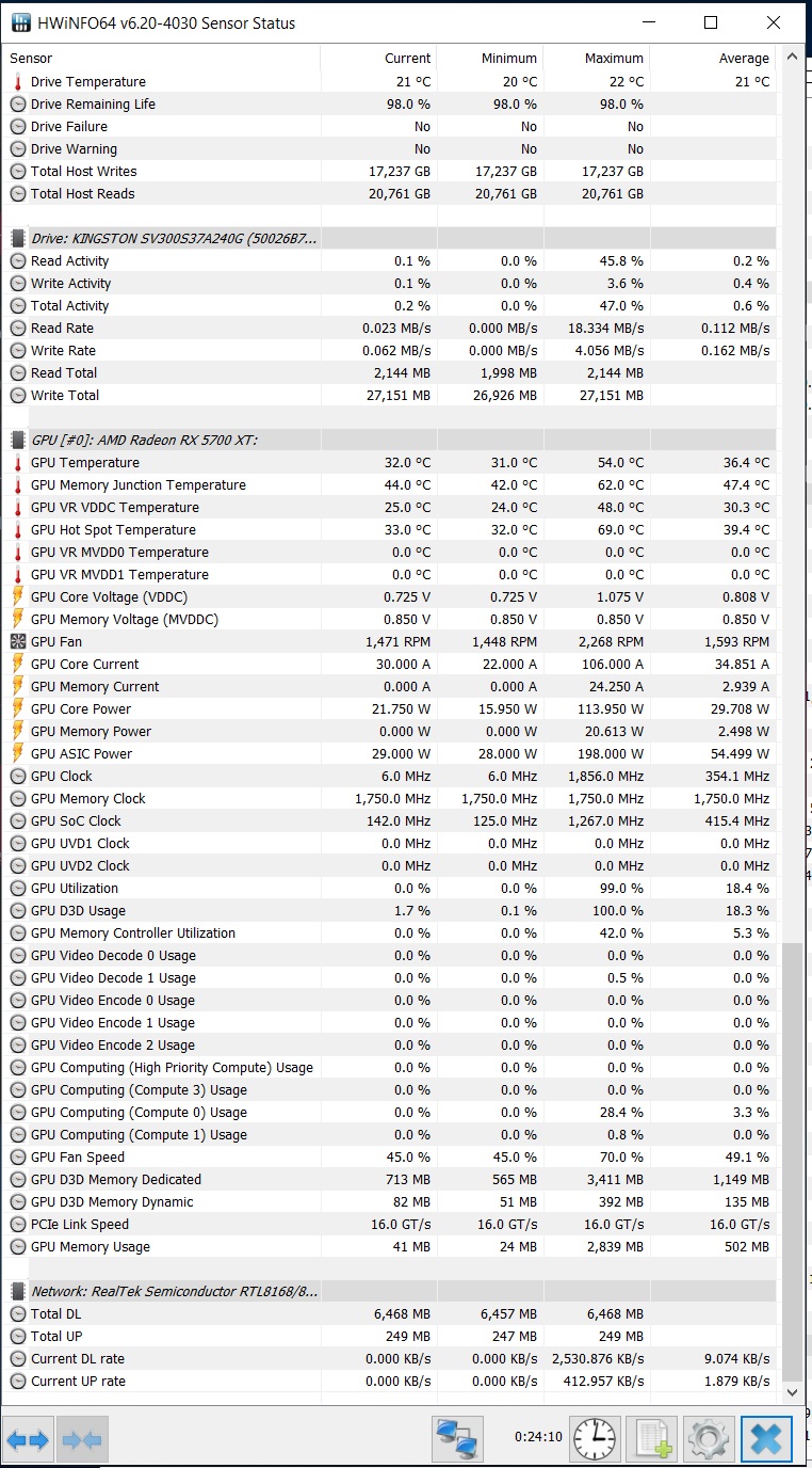 Периодически бывают черные экраны но в последнее время все меньше может это из-за того что я включил оптимизировать соединение по HDMI, может по тому что я ограничение карты поднял на 25% но использую кривую по вольтажу 800/750-1350/850/-1900/1075 Драйвер 19.12.3 карта 5700 XT PULSE WINDOWS LTSC 1809 скачал и прогнал тест по вольтажу БП результаты видны на скрине