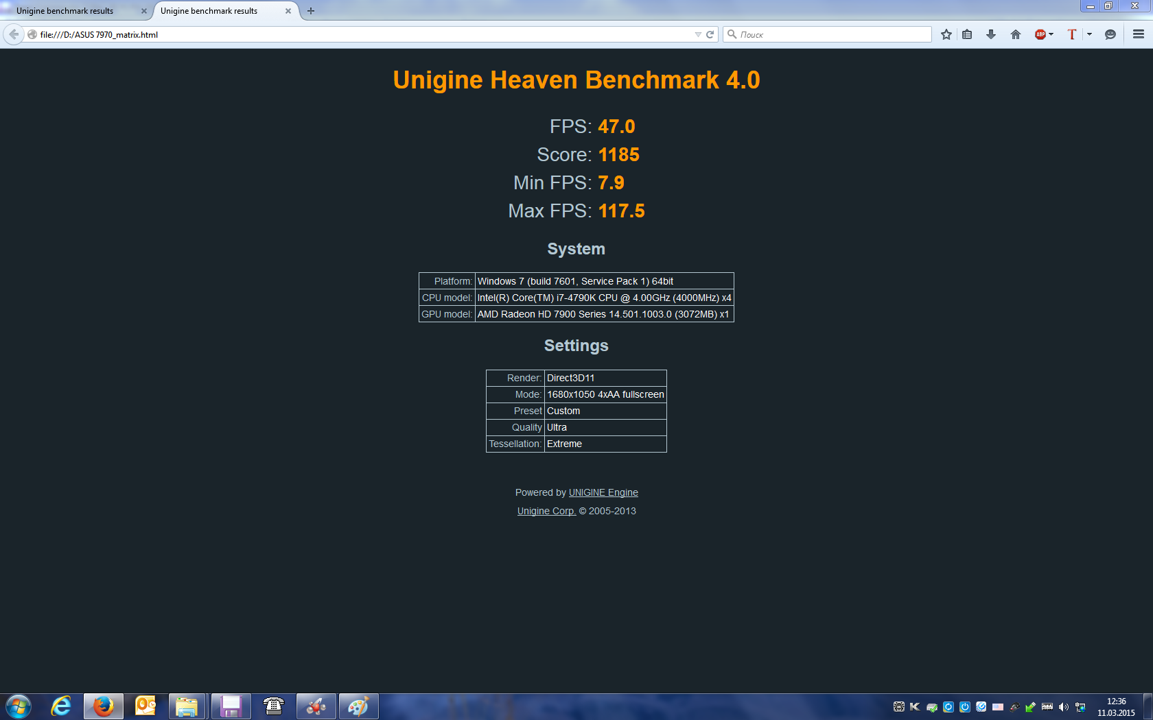 Ребята подскажите про Asus 7950 V2. При частотах 1000/1400(чип/память) до скольки греется при прохождении теста Heaven 4 и каков результат в этом самом тесте?