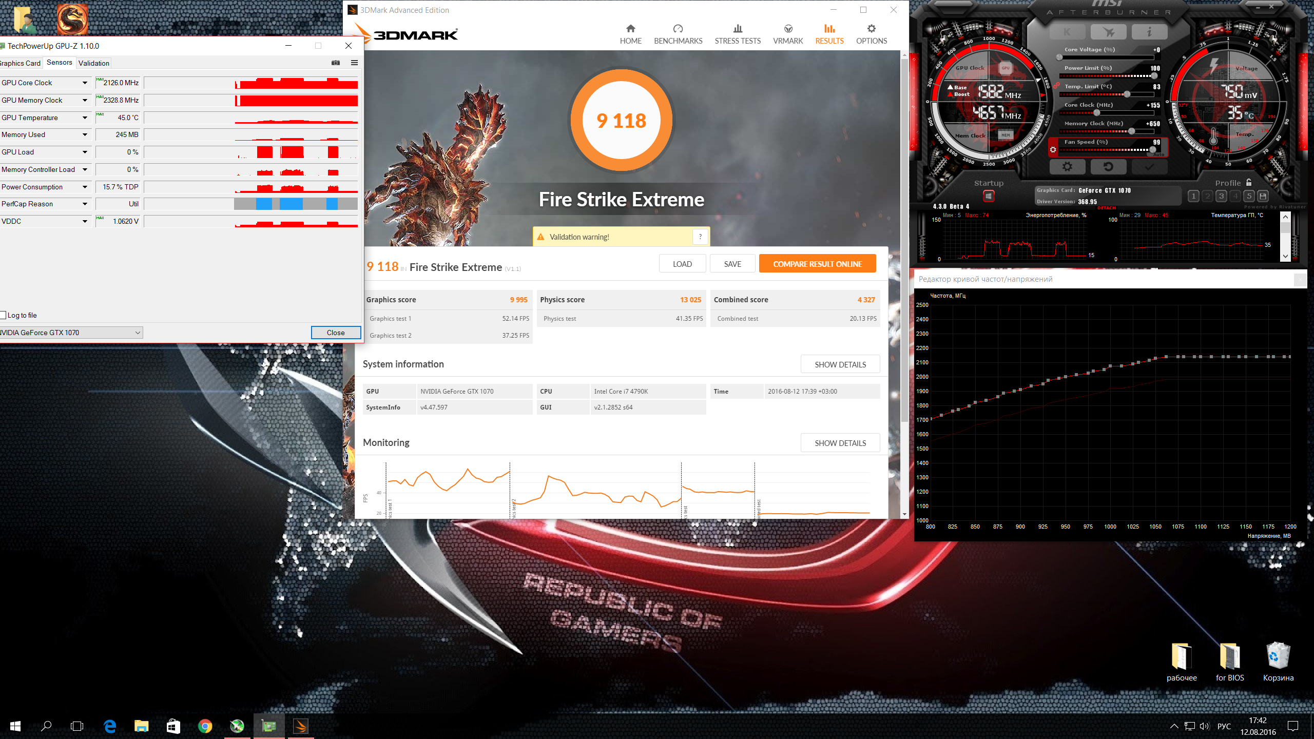 1 и 2 график разница в 50 очков можно назвать погрешностью + я не утверждал что одна частота-один результат. в вашем случае с вашей температурой в 43 градуса буст 3.0 ваще никак не играет с вашей картой. он не уменьшает ваши частоты с нарастание температуры как у других. Но все же он как то взаимодействует с частотами на другом вольтаже, поэтому если в AB оставить разгон на 0 и поднять допустим только параметр 1.0v в курве то конечно будет просадка по очкам в бенче. но если выставить нормальную частату в 2088 в вашем случае в AB а в курве настроить 1.0v на эту же самую частоту 2088 то никаких просадок в попугаях не будет