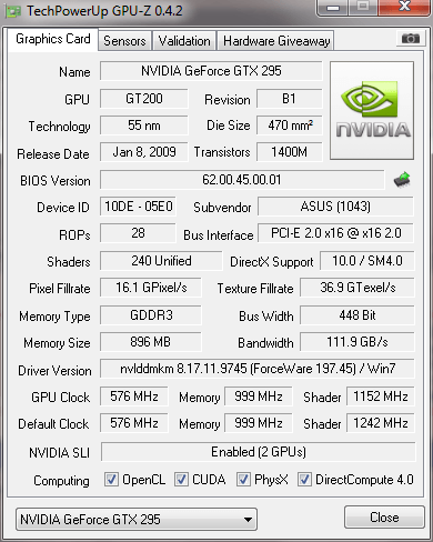 Вот скрины GpuZ 1 половина http://gpuz.techpowerup.com/10/05/21/bcd.png 2 половина http://gpuz.techpowerup.com/10/05/21/cew.png Карта работает в сли режими все нормально...Мать по идее тут ни при чем.Щас проверил в METRO2033 PhysX работает нормально и на GPU в Mass Effect 2 PhysX тоже работает но уже от CPU а не от видеокарты....(после установки Cryostasis TechDemo в верхнем левом углу экрана в некоторых играх появилась информация от чего в данным момент работает PhysX) Мб это все же глюк Вин7?