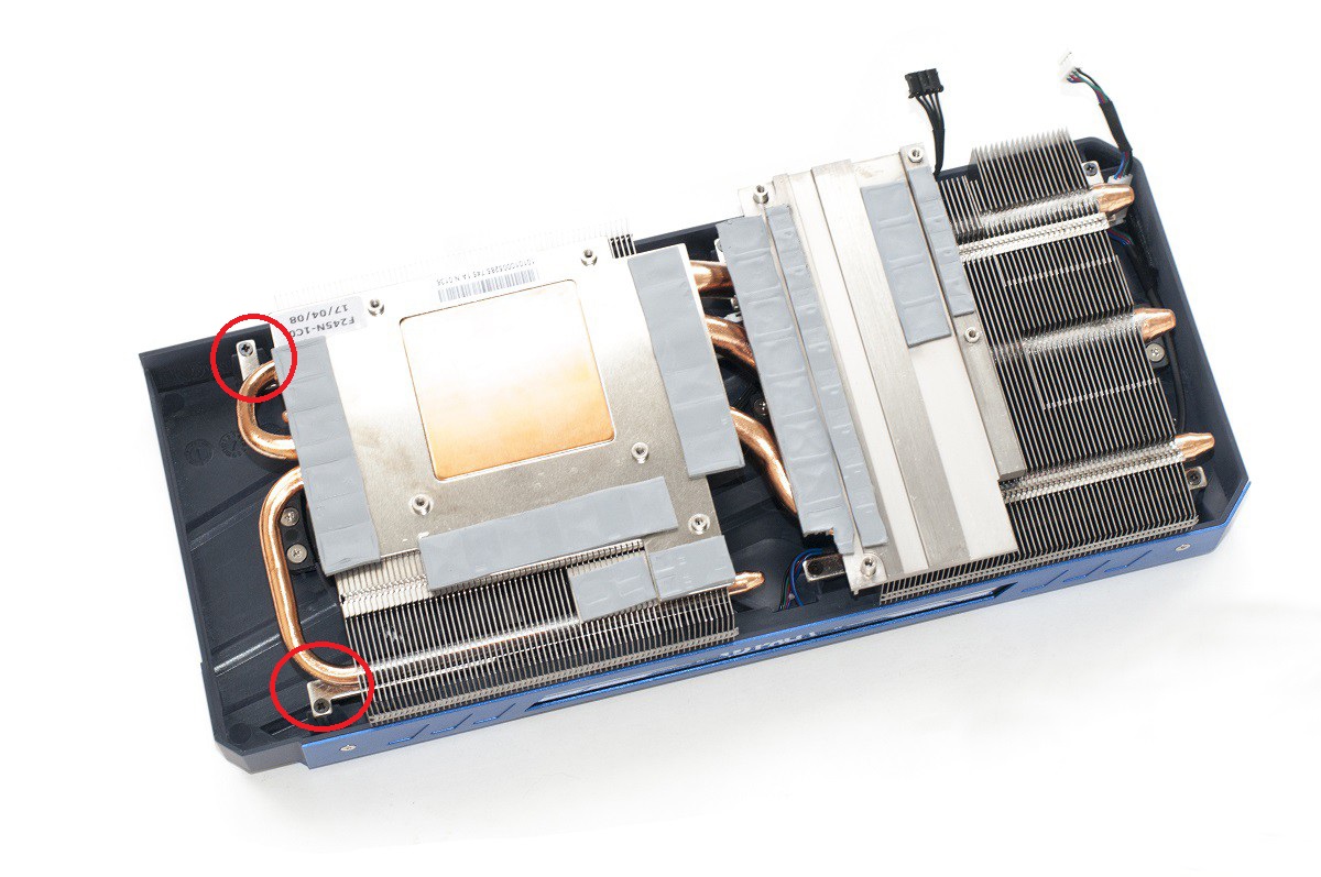 Привет всем. Имею Palit GeForce GTX 1080 Ti GameRock Premium. После транспортировки вставил в комп, запустил-услышал треск. Как оказалось, нижний вентилятор из пары, что ближе к панели видеовыходов, цеплялся о радиатор. Проблема оказалась проста - при транспортировке (а карта преодолела немалый путь) чуть прогнулась клипса системы охлаждения.